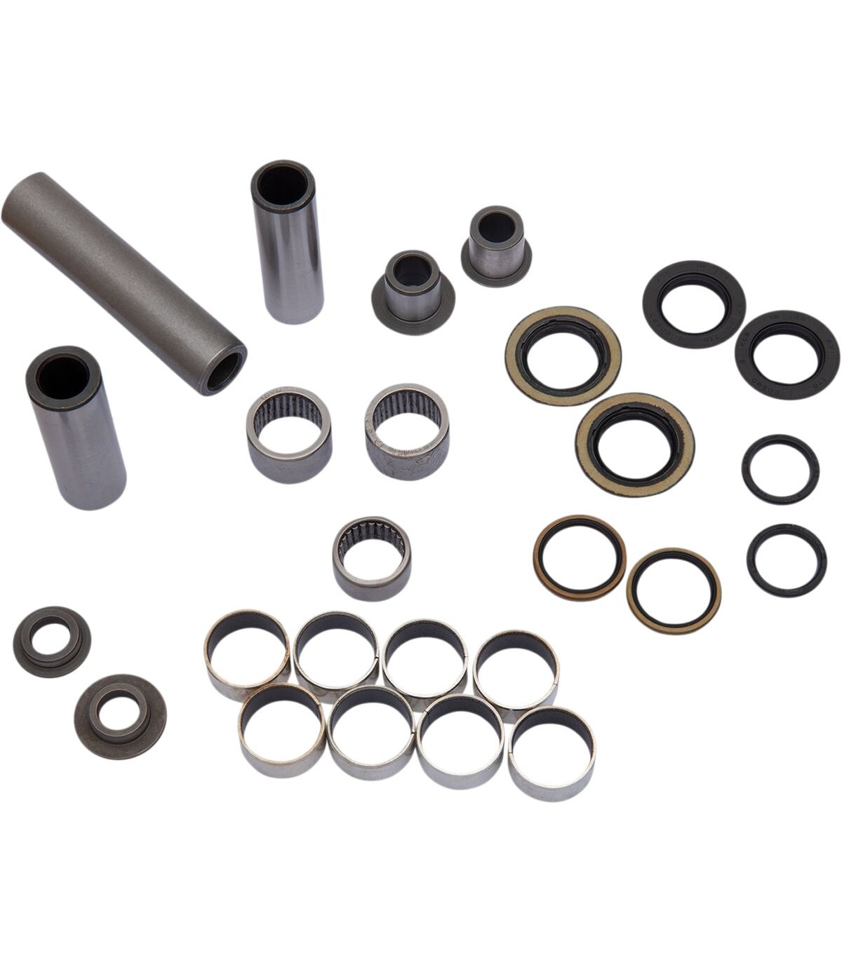 Linkage Bearing KitEach kit includes the lower shock bearing, all the shafts, seals and spacers in the link, link arm and lower shock mount52100 bearing steel and hard-plated spacers resist wear and rust