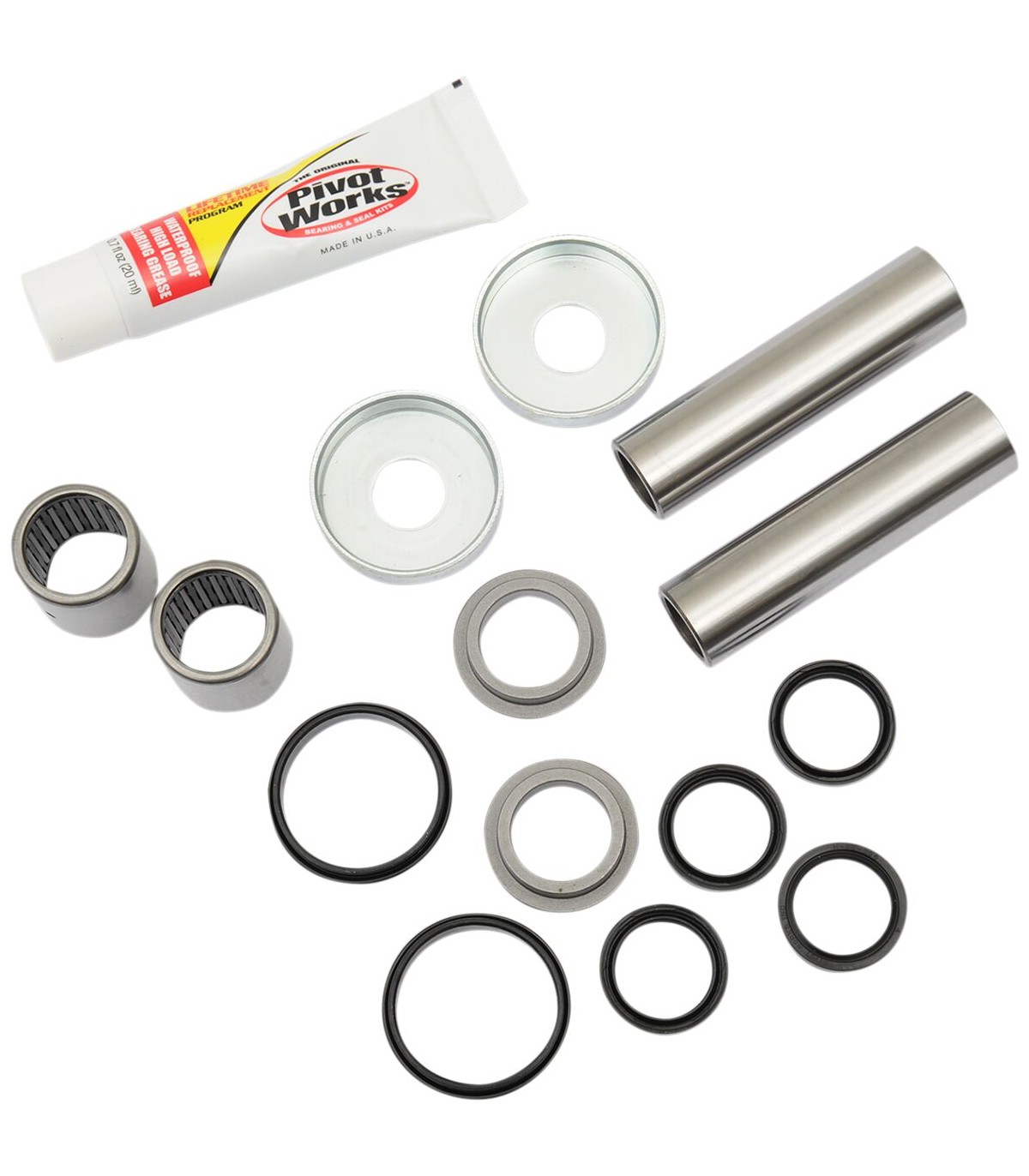 Swingarm Bearing KitRestore handling and suspension control lost due to worn or rusted linkage componentsConvenient kit eliminates looking up multiple part numbersComplete kits contain bearings, pins, collars and seals manufactured to OEM specifications for a perfect fitConsiderable savings over OEM prices
