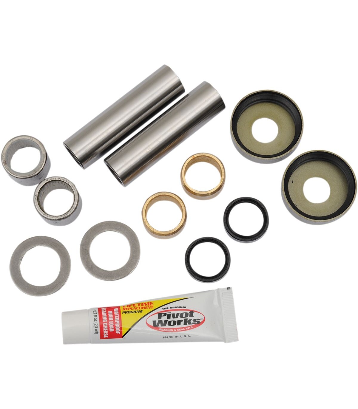 Swingarm Bearing KitRestore handling and suspension control lost due to worn or rusted linkage componentsConvenient kit eliminates looking up multiple part numbersComplete kits contain bearings, pins, collars and seals manufactured to OEM specifications for a perfect fitConsiderable savings over OEM prices