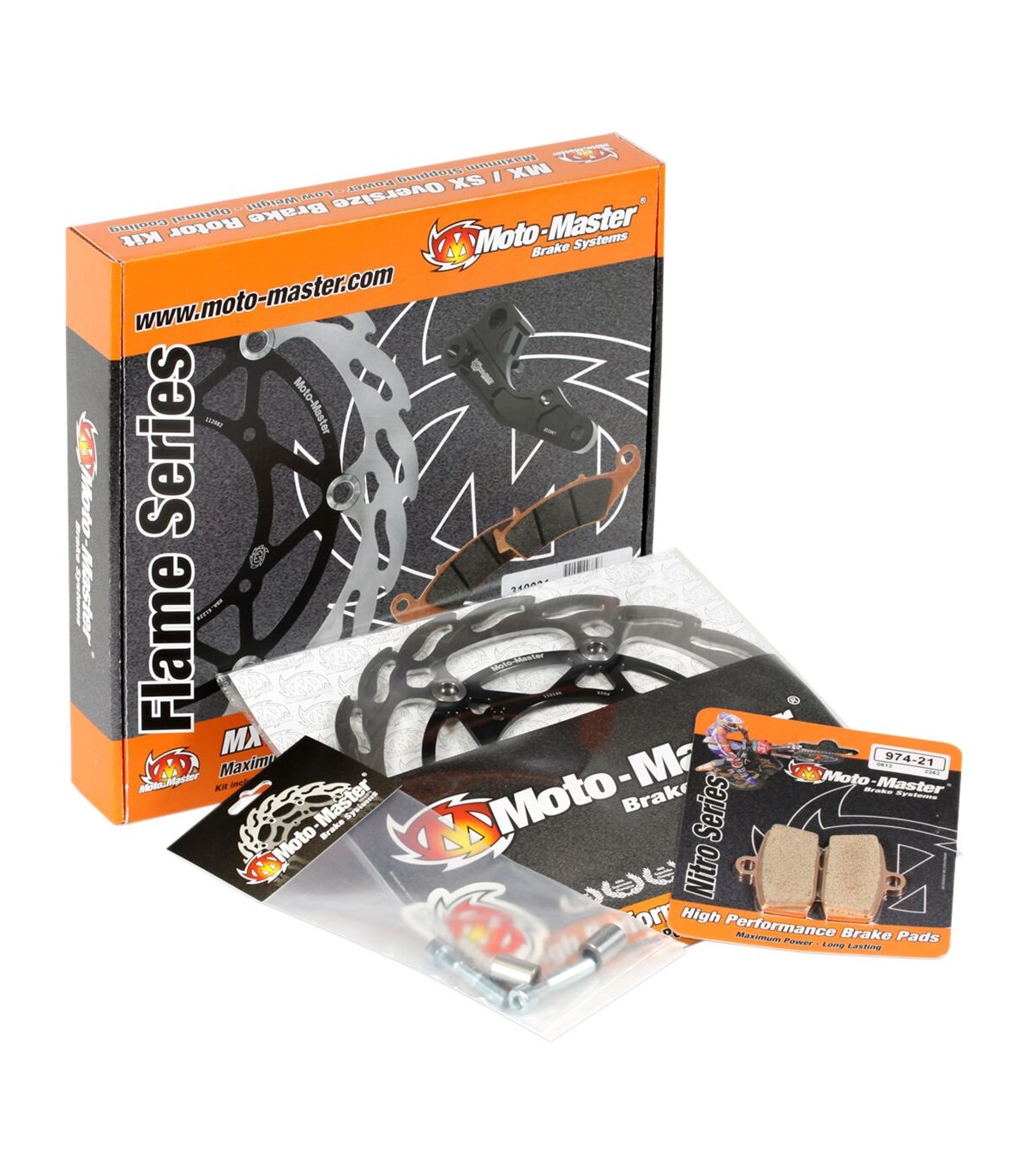 BRAKE KIT FLAME FIXED DISC 220 MM, BRAKE PADS, RELOCATE BRACKET