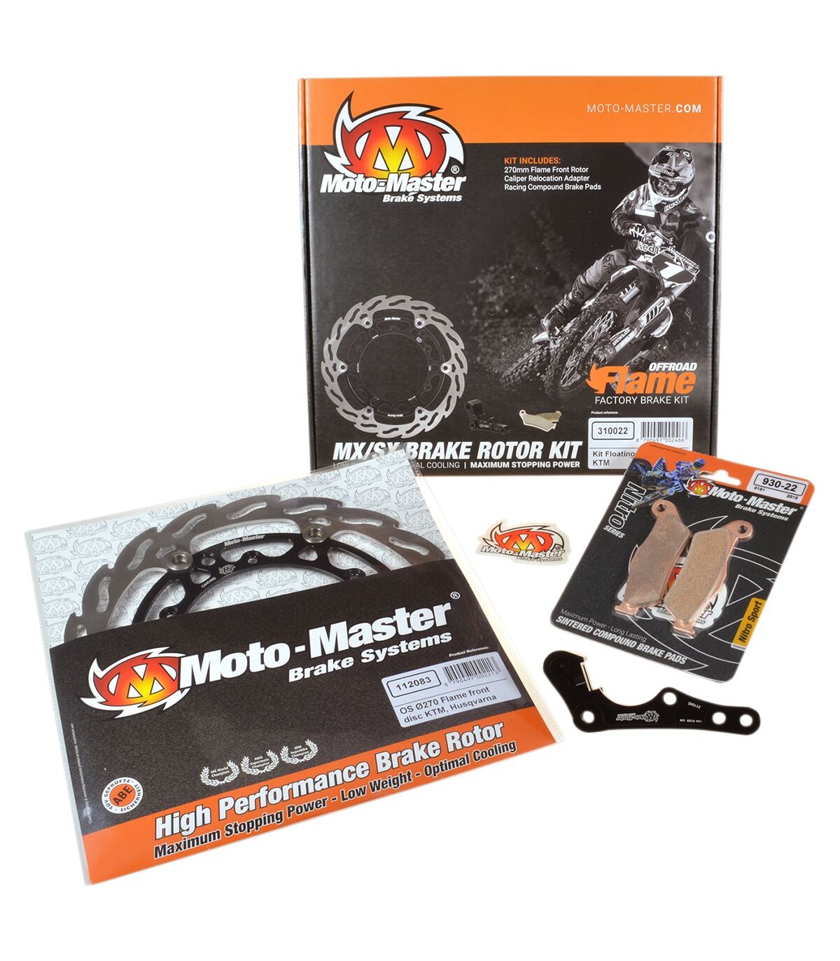 Kit freinDisque flottant surdimensionné avant MX avec support anodisé noir marqué au laser léger en acier inoxydable et disque Flame inoxydable d'un diamètre de 70mmAdaptateur de déport d'étrier assorti en aluminium taillé dans la masse de qualité aéronautique usiné CNC, anodisé noir et marqué au laserUn kit de frein avant très puissant et contrôlable, en particulier lorsqu'il est utilisé combiné à nos plaquettes de frein composées RacingLe kit surdimensionné le plus fréquemment utilisé avec le Racing MXGPLe kit contient : un disque de frein surdimensionné , un adaptateur de repositionnement d'étrier et un kit de plaquettes de frein avant composées Racing Moto Master Nitro SportOffre une amélioration des performances de 35 % par rapport à la version d'origineLe design léger offre un gain de poids de 20 %Le design Flame offre un refroidissement optimal et un freinage souple et plus prévisible, vous permettant de freiner plus fort