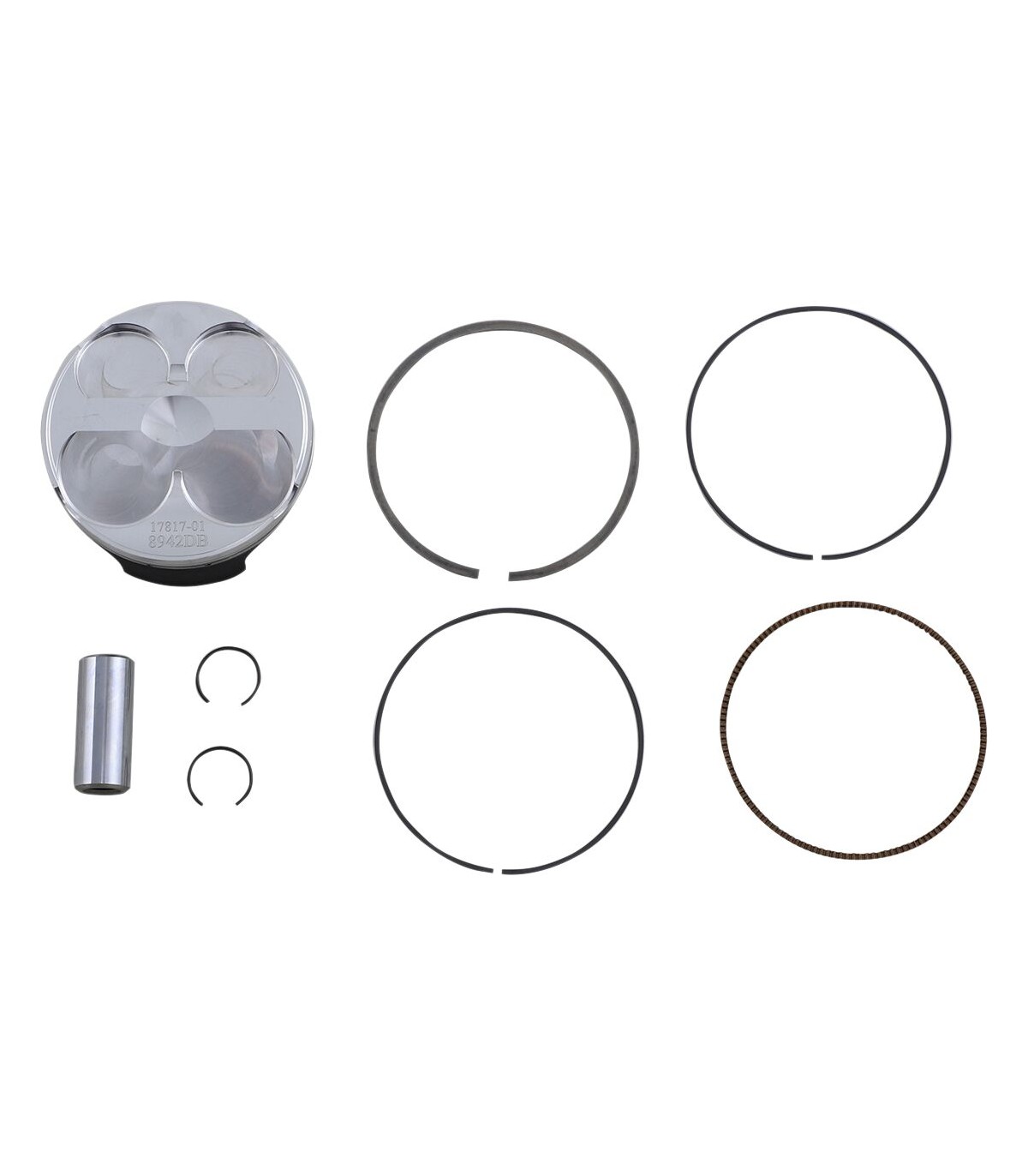 Piston Kit for 4 StrokeEnhanced piston pin oiling slots, radial boss machining, and annular grooves for improved wrist pin lubricationLightweight piston with a tight piston wall clearance for a quieter running engineSkirt coated for reduced friction and improved break in performanceRing land treatment for improved ring seal and oil controlDouble bridged forging design where notedKit includes piston, rings, wrist pin and pin locksDouble bridge forging.