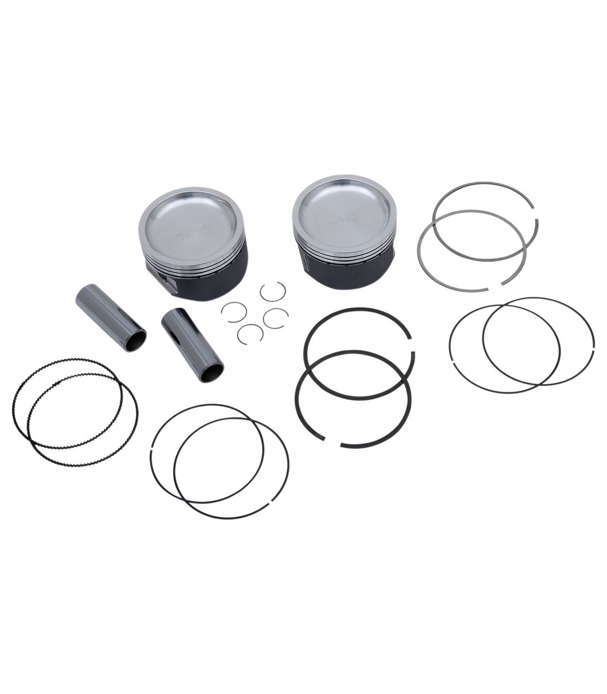 Piston Kit for 4 StrokeEnhanced piston pin oiling slots, radial boss machining, and annular grooves for improved wrist pin lubricationLightweight piston with a tight piston wall clearance for a quieter running engineSkirt coated for reduced friction and improved break in performanceRing land treatment for improved ring seal and oil controlDouble bridged forging design where notedKit includes piston, rings, wrist pin and pin locksKit Includes:
