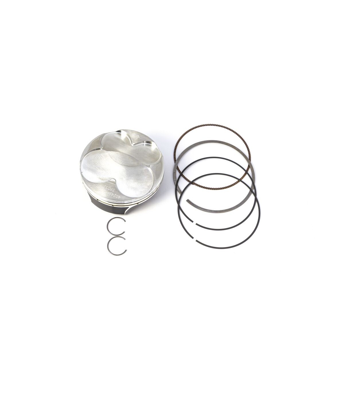 Kit de pistons forgésTous les pistons Wiseco sont forgés en alliage d’aluminium aérospatial sur les presses de pointe WisecoLes pistons Wiseco sont munis de la technologie éprouvée sur banc de puissance pour dépasser la concurrenceLe kit comprend les pistons, les segments, les axes, les clips et le roulement à aiguilles le cas échéantLes types de segments ne sont pas interchangeables (par exemple, CD ne peut pas être remplacé par TD)Les segments, les clips et les axes de piston Wiseco ne conviennent que pour les pistons Wiseco