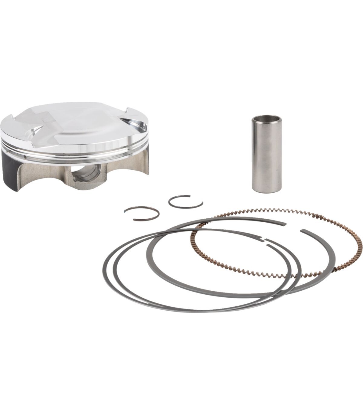 Piston KitPistons made are with high quality, permanent skirt coating to reduce friction and piston rock for quiet and improved performanceOptimized machining for lightness, as well as maintained strength in key areas such as crown and skirt wall cross sectionForged from aerospace grade aluminum alloyPiston kit includes piston, rings, pin and clipsKit Includes: