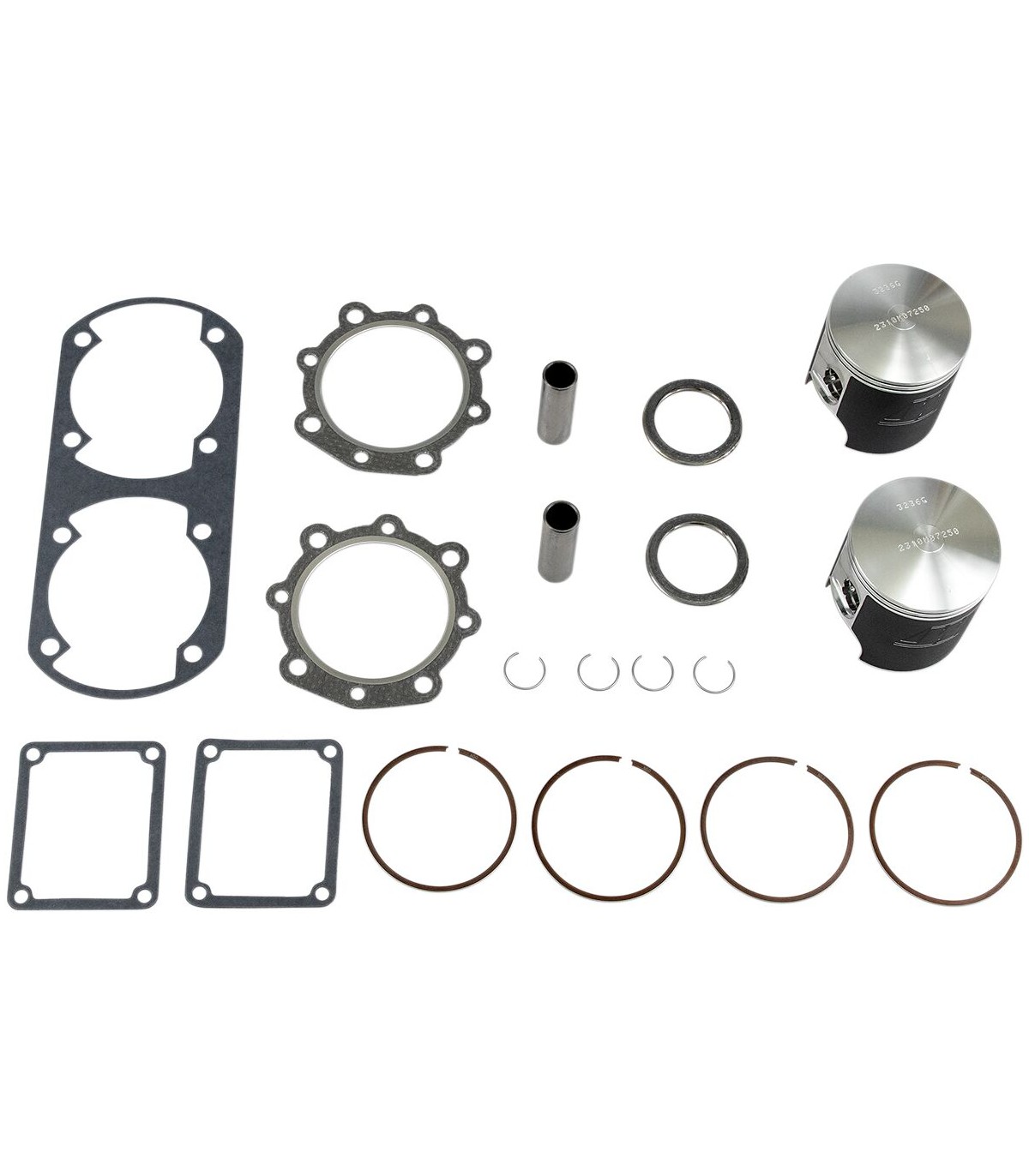 Piston Kit with GasketsAll the necessary components for overboring or rebuilding your top endKit includes forged pistons, rings, wrist pins, circlips and top end gasket setCylinder sleeves must be purchased separately.Fits cast iron bore cylinder.