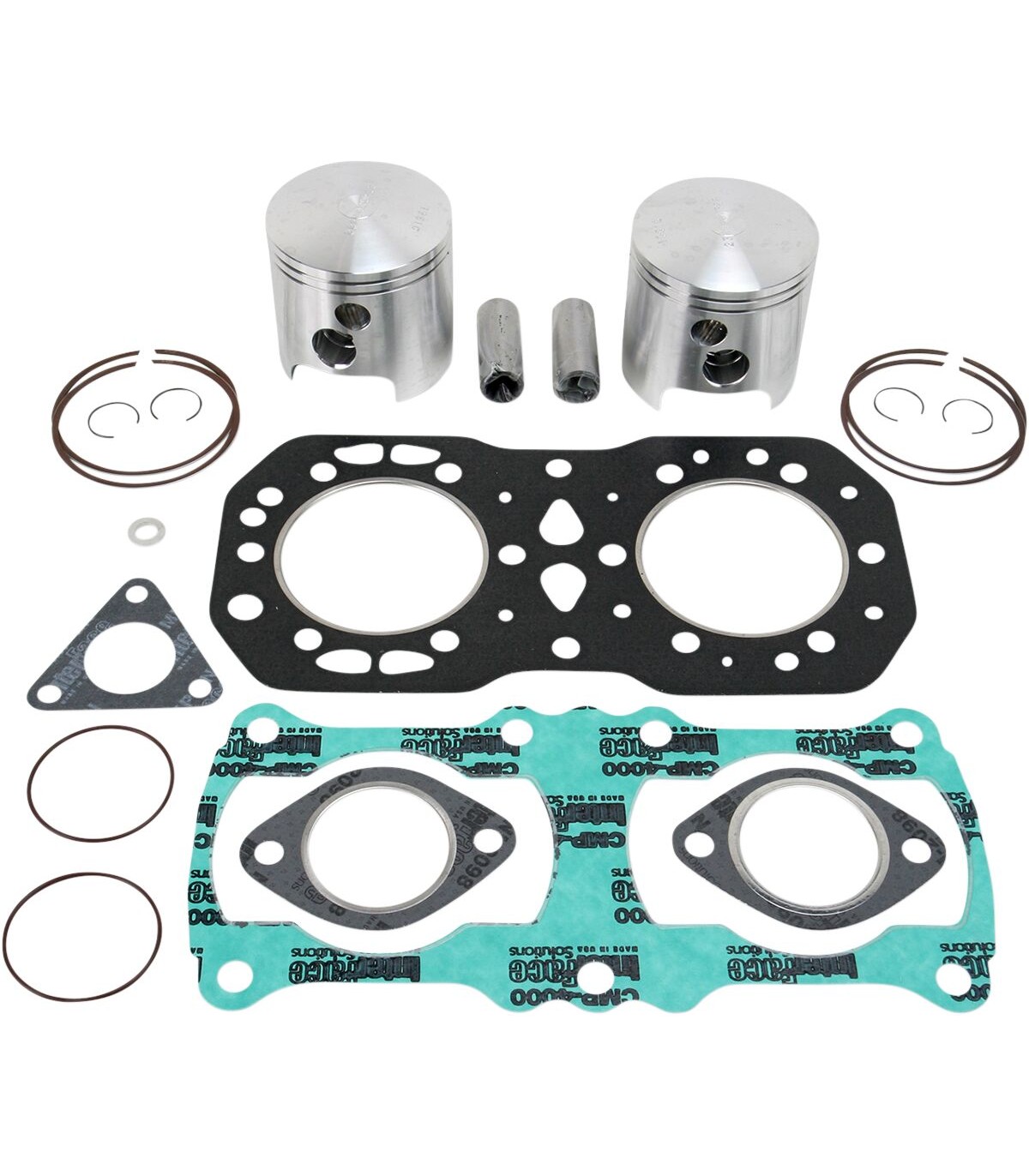 Piston Kit with GasketsAll the necessary components for overboring or rebuilding your top endKit includes forged pistons, rings, wrist pins, circlips and top end gasket setCylinder sleeves must be purchased separately.Will not fit WideTrak models (EC45PL097).