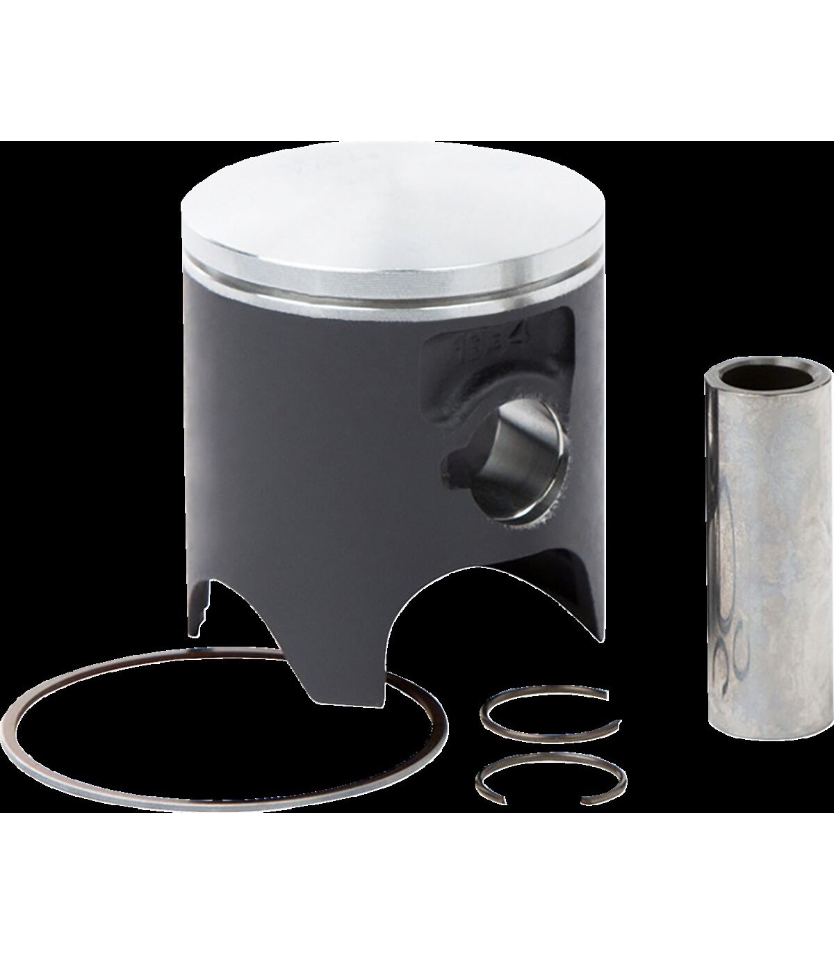Piston Kit Cast Replica for 2 StrokePiston is heat treated with a T-5 hardening and tempering cyclePiston skirt is coated with a high-tech Molybdenum Disulphite coating for faster break-in time and increased piston lifeGravity-cast aluminum alloy (not forged) with 18% silicone contentCast OE replacement pistonKit includes piston, rings, wrist pin and circlipsKit Includes: