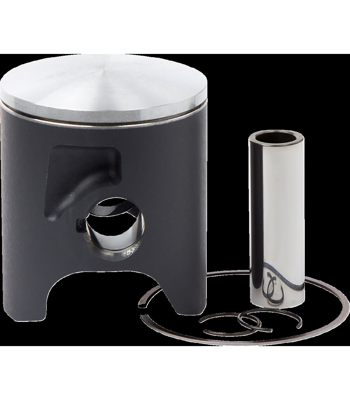 Piston Kit Cast Replica for 2 StrokePiston is heat treated with a T-5 hardening and tempering cyclePiston skirt is coated with a high-tech Molybdenum Disulphite coating for faster break-in time and increased piston lifeGravity-cast aluminum alloy (not forged) with 18% silicone contentCast OE replacement pistonKit includes piston, rings, wrist pin and circlipsKit Includes: