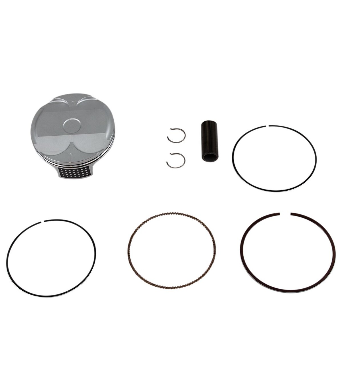 Piston Kit GP Racer's Choice for 4-StrokeThe piston skirt is coated with a high-tech Molybdenum Disulphite coating for faster break in time and increased piston lifeT-bridge design high compression piston with unique shot peened domeThe piston is heat-treated with a T-5 hardening and tempering cycleWrist pin is DLC (Diamond-Like Carbon) coatedRing set is nitride coatedKit Includes: