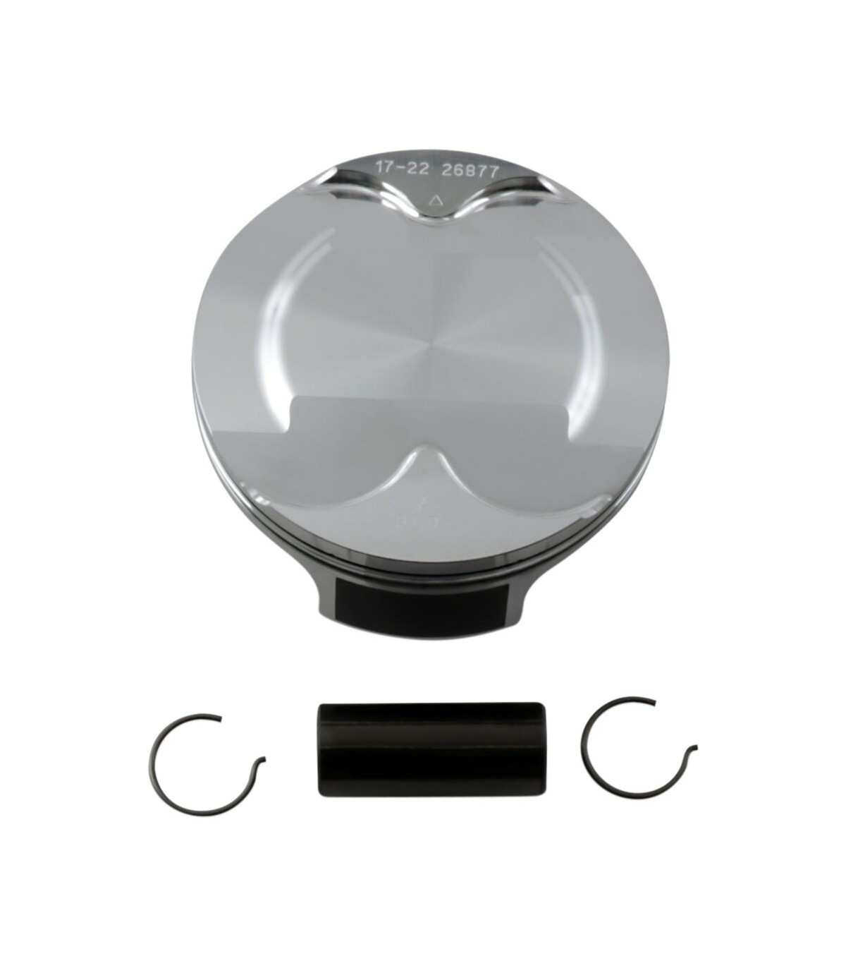 Piston Kit Forged High Compression for 4-StrokeThe piston is heat-treated with a T-5 hardening and tempering cycleThe piston skirt is coated with a high-tech Molybdenum Disulphite coating for faster break in time and increased piston lifeForged high compression piston improves power and torque across entire rpm rangePiston kit includes piston, rings, wrist pin and circlipsKit Includes: