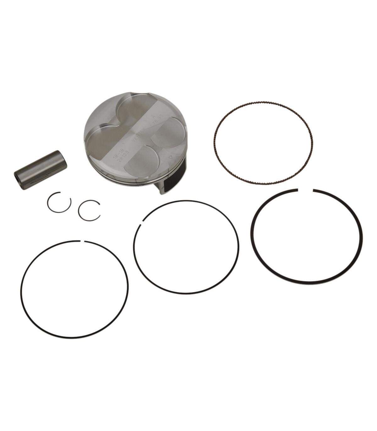 Piston Kit Cast Replica for 2 StrokePiston is heat treated with a T-5 hardening and tempering cyclePiston skirt is coated with a high-tech Molybdenum Disulphite coating for faster break-in time and increased piston lifeGravity-cast aluminum alloy (not forged) with 18% silicone contentCast OE replacement pistonKit includes piston, rings, wrist pin and circlips