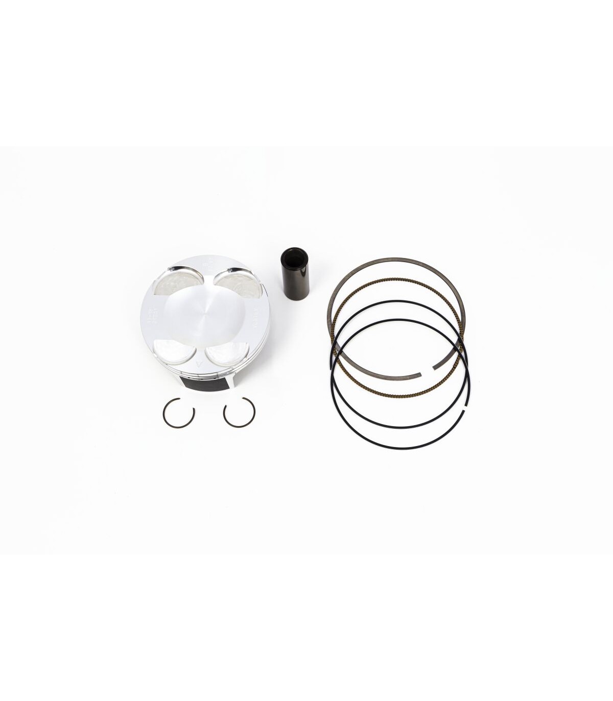 Piston Kit (Forged Replica)Pro Replica – Forged piston in original OE formAll pistons are heat treated with a T-5 hardening and tempering cycleAll piston skirts are coated with a high-tech Molybdenum Disulphite coating for faster break-in time and increased piston lifeForged pistons are forged from 2618 aluminum for superior strength and durabilityForged Replica pistons are forged OE replacementsReplica pistons and all rings are OEM replacementsKits include piston, rings, wrist pin and circlipsReplacement two-stroke piston rings sold individually; four-stroke piston rings sold as a set