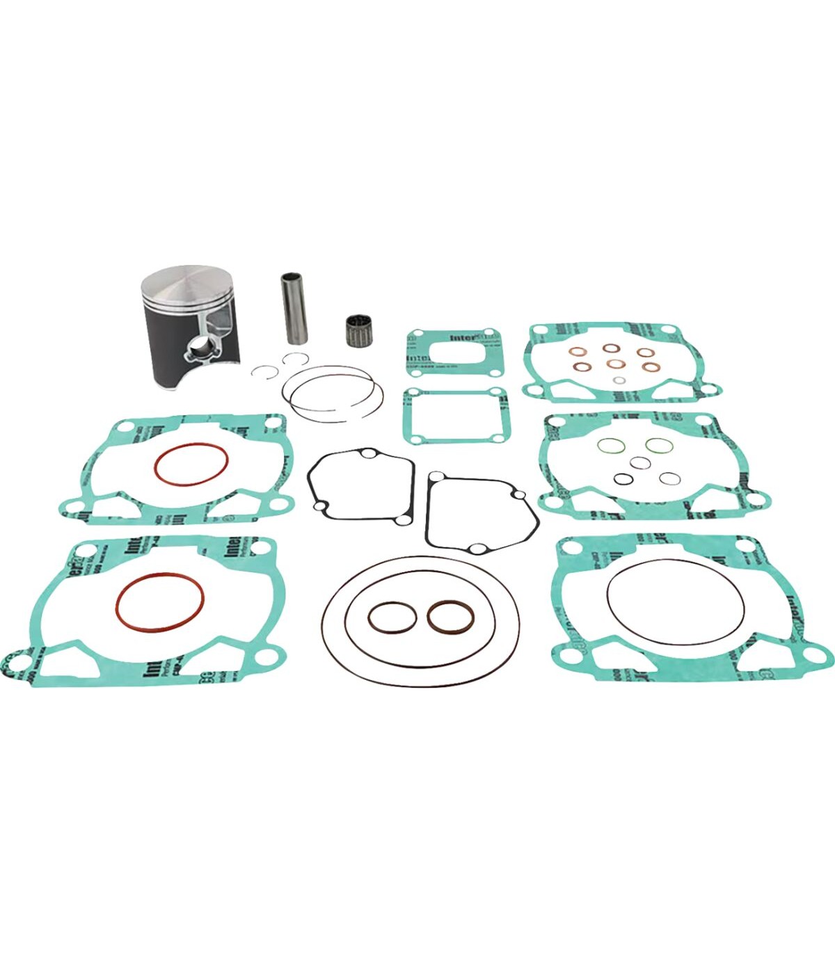 Top End Piston Kit Cast Replica for 2-StrokeThe piston is heat treated with a T-5 hardening and tempering cycleThe piston skirt is coated with a high-tech Molybdenum Disulphite coating for faster break-in time and increased piston lifeGravity-cast aluminum alloy (not forged) with 18% silicone contentCast OE replacement pistonTop end kit includes piston, rings, pins, circlips, top end gaskets, and wrist pin bearingKit Includes: