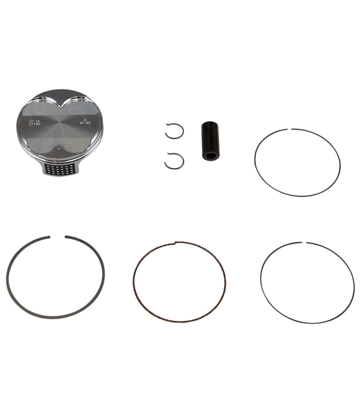 Piston Kit (Forged Replica)Pro Replica – Forged piston in original OE formAll pistons are heat-treated with a T-5 hardening and tempering cycleAll piston skirts are coated with a high-tech Molybdenum Disulphite coating for faster break-in time and increased piston lifeForged pistons are forged from 2618 aluminum for superior strength and durabilityForged Replica pistons are forged OE replacementsReplica pistons and all rings are OEM replacementsReplacement two-stroke piston rings sold individually; four stroke piston rings sold as a set