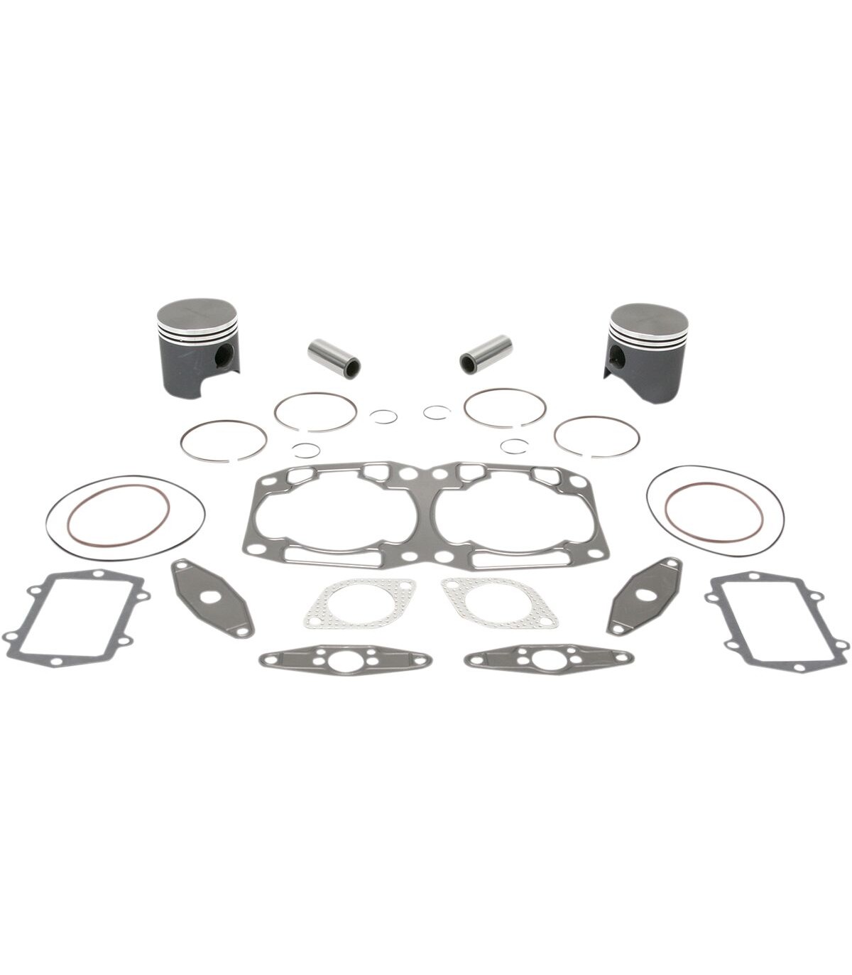 Piston Kit with GasketsAll the necessary components for overboring or rebuilding your top endKit includes forged pistons, rings, wrist pins, circlips and top end gasket setCylinder sleeves must be purchased separately.Fits Nikasil bore cylinder.