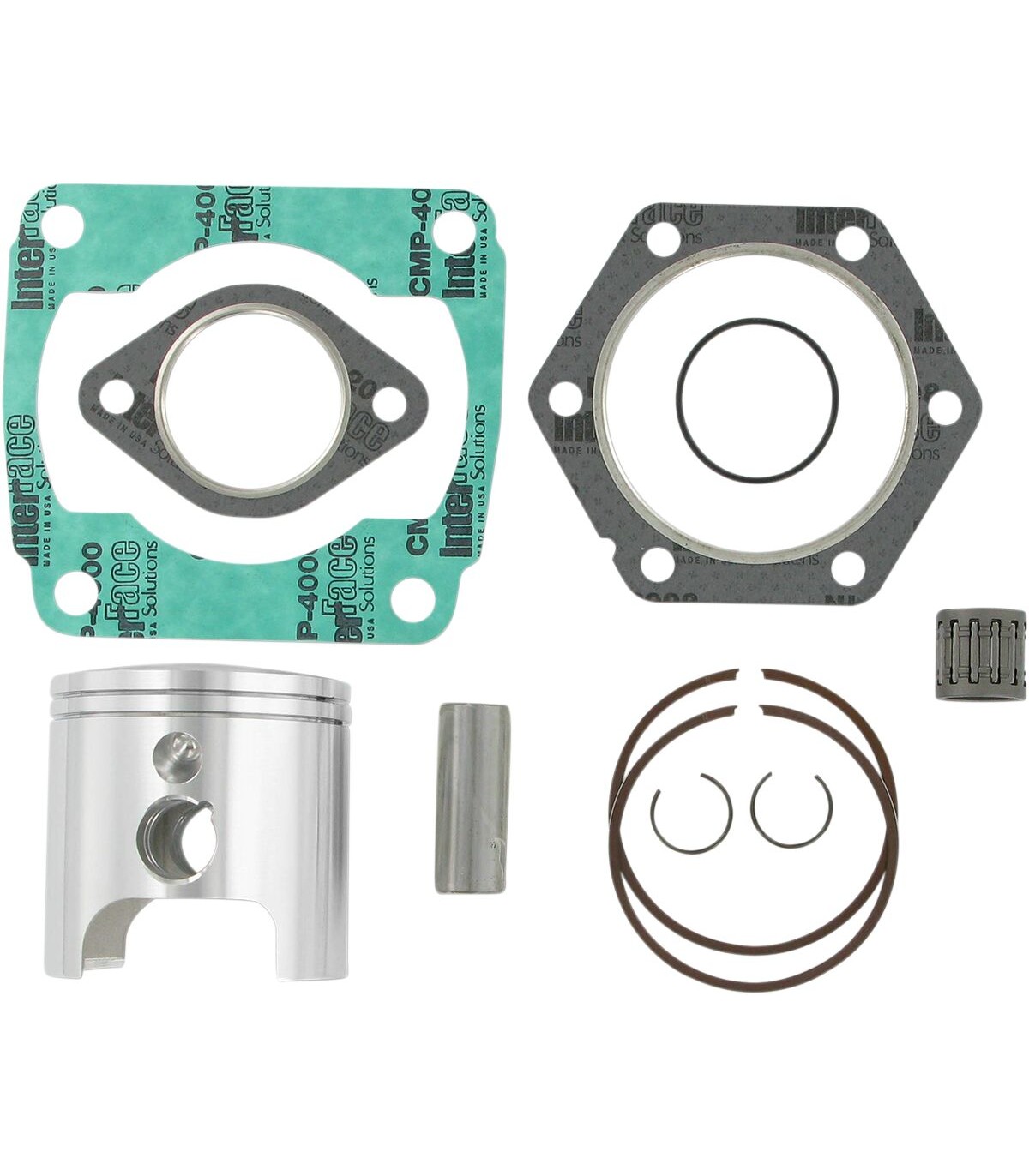 High Performance Piston Kit with Gaskets for 2-StrokeComplete piston kit includes pistons, rings, wrist pins, circlips and top-end gasket kit for one complete engineWiseco pistons can be fitted only with Wiseco ringsWiseco ring types are not interchangeable (i.e., CD is not interchangeable with LC).Cylinder sleeves must be purchased separately.Kit Includes: