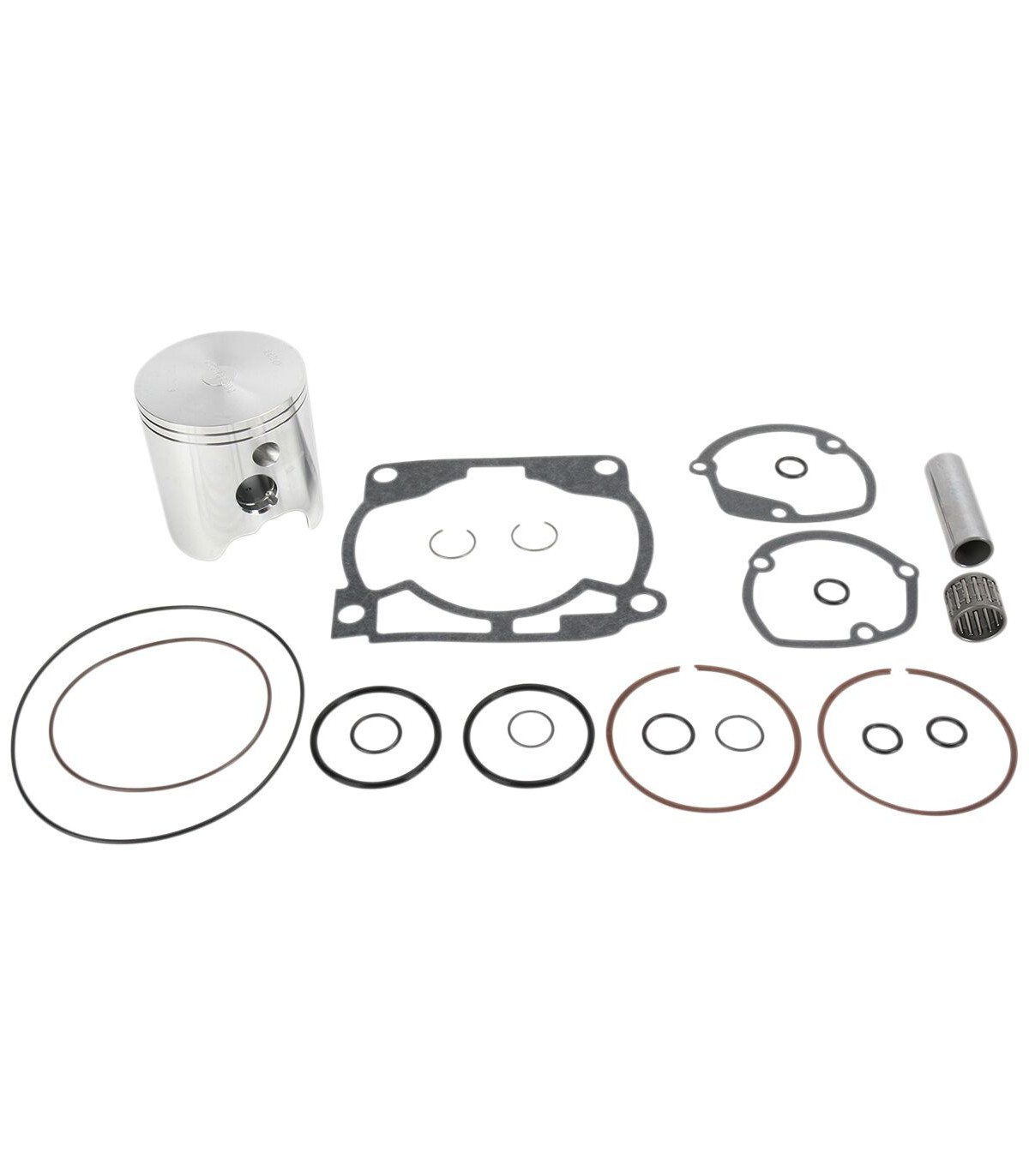 High Performance Piston Kit with Gaskets for 2-StrokeComplete piston kit includes pistons, rings, wrist pins, circlips and top-end gasket kit for one complete engineWiseco pistons can be fitted only with Wiseco ringsWiseco ring types are not interchangeable (i.e., CD is not interchangeable with LC).Cylinder sleeves must be purchased separately.Kit Includes: