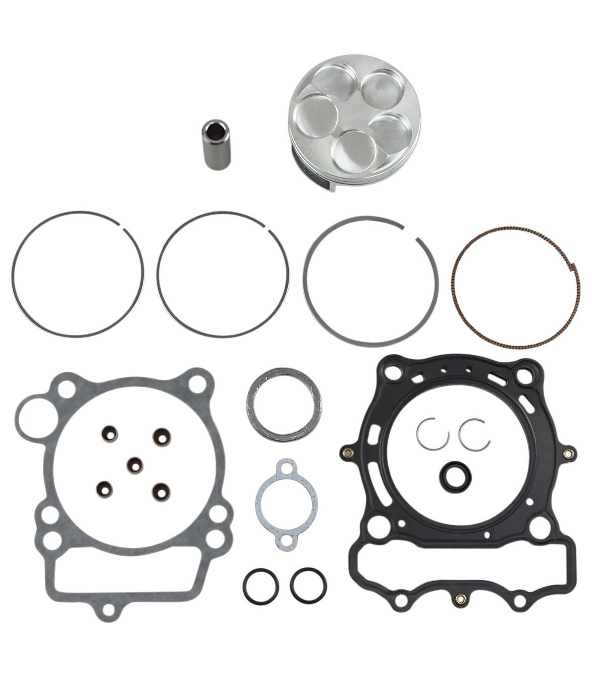 Kit de pistons haute performanceLes kits de piston complets contiennent des pistons hautes performances forgés, des segments, des axes de piston, des circlips et un kit de joint haut moteur, pour un moteur completLes types de segments Wiseco ne sont pas interchangeables (c’est-à-dire que le CD ne peut pas être remplacé par le LC) et conviennent uniquement aux pistons WisecoATTENTION : les pistons Wiseco ne peuvent s’ajuster qu'avec les segments Wiseco.High compression.