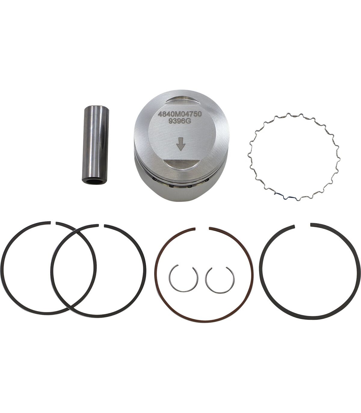 Piston Kit Forged Series for 4-StrokeForged 4-stroke piston is designed for each specific engine application and built to the tightest tolerances for the ultimate combination of performance and strengthDedicated forgings allow for optimized strength-to-weight ratioIdeal for multiple purpose ridingKit includes piston, wrist pin, rings and circlipsKit Includes: