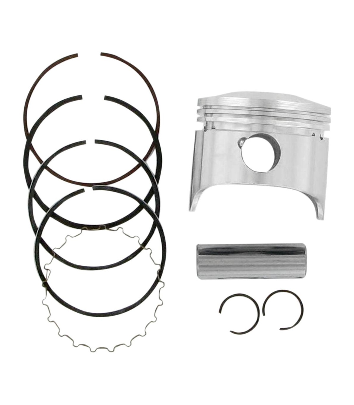Piston Kit Forged Series for 4-StrokeForged 4-stroke piston is designed for each specific engine application and built to the tightest tolerances for the ultimate combination of performance and strengthDedicated forgings allow for optimized strength-to-weight ratioIdeal for multiple purpose ridingKit includes piston, wrist pin, rings and circlipsKit Includes: