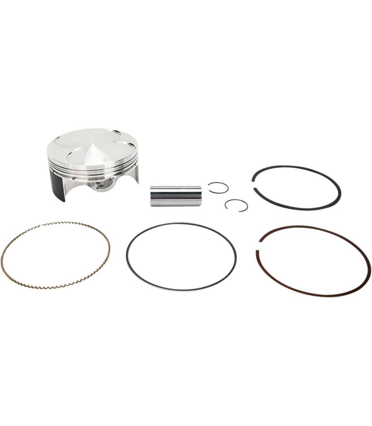 Piston Kit Forged Series for 4-StrokeForged 4-stroke piston is designed for each specific engine application and built to the tightest tolerances for the ultimate combination of performance and strengthDedicated forgings allow for optimized strength-to-weight ratioIdeal for multiple purpose ridingKit includes piston, wrist pin, rings and circlipsKit Includes: