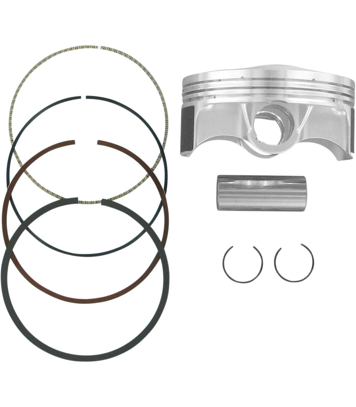 Piston Kit Forged Series for 4-StrokeForged 4-stroke piston is designed for each specific engine application and built to the tightest tolerances for the ultimate combination of performance and strengthDedicated forgings allow for optimized strength-to-weight ratioIdeal for multiple purpose ridingKit includes piston, wrist pin, rings and circlipsPiston is gas ported.
