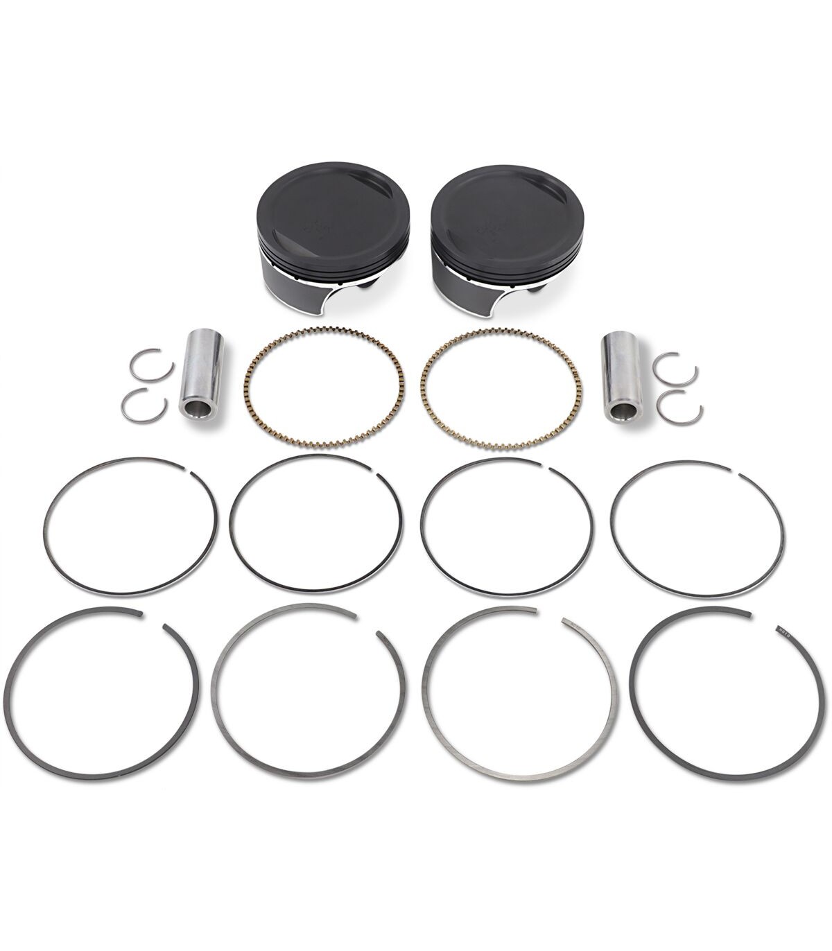 High-Performance Forged Piston KitWiseco's high-tech manufacturing ensures greater operating strength and lower expansion at high temperaturesKits include forged pistons with ArmorGlide™ coated skirts, rings, retainer clips, and chrome piston pinsTwin Cam pistons have ArmorPlating which improves ring seal, eliminates ring micro-welding, and improves the piston's ability to defend against detonation damagePistons are made in the USAWiseco pistons that use VM-rings can only be fitted with Wiseco VM-rings; Wiseco pistons that use XC-rings can only be fitted with Wiseco XC-rings.For '12-'17 Twin Cam 103 cubic inch and '07-'13 Twin Cam 96 cubic inch bored to 103 cubic inch.