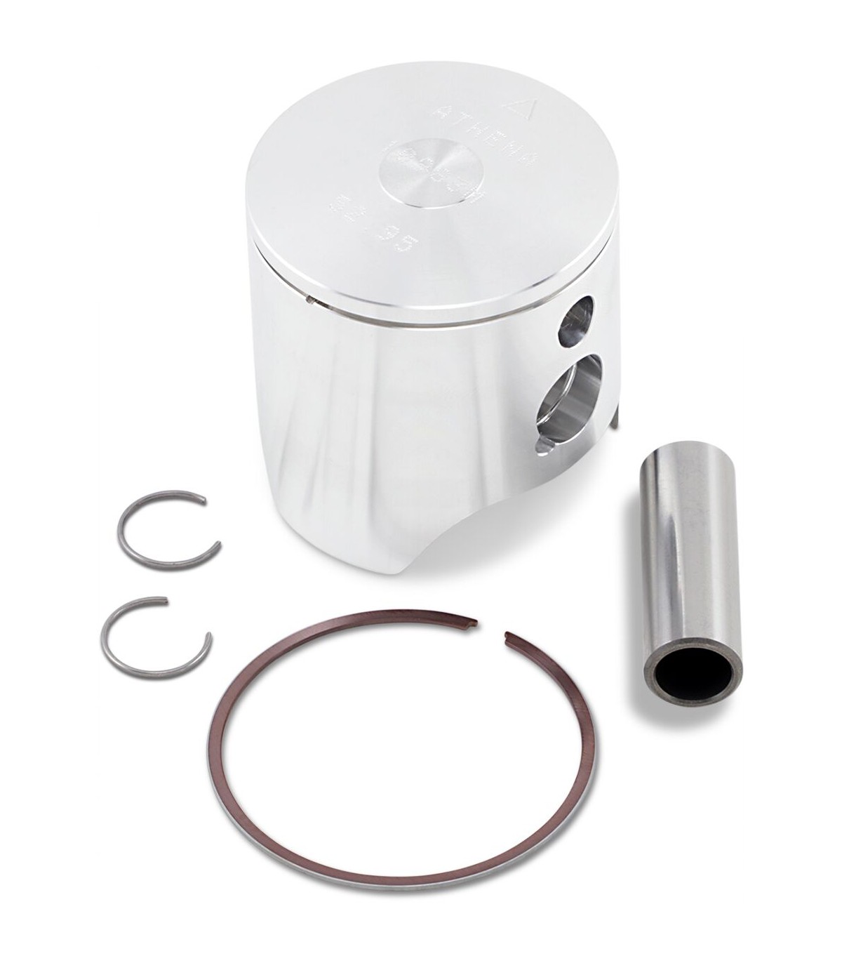 Piston KitTwo-stroke pistons are made from 4032 siliciumBoth include 3% copper in materials for better heat resistanceAll pistons are forged using a precision heat-treatment process that allows for production tolerances of just 0.01 mmForged piston tooling allows for the lightest available productKit includes antiwear coated piston, rings, pin and circlips