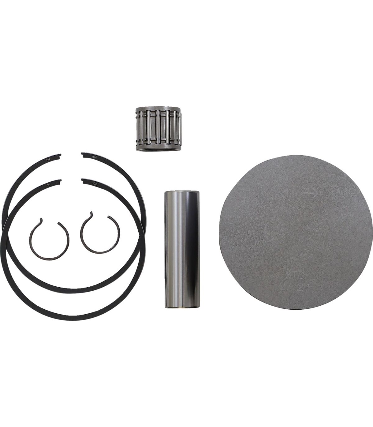 Kit de pistonPiston moulé de haute qualité, fabriqué avec un outillage et un moulage spécifiquesFabriqué d’un alliage hypereutectique pour plus de résistance et une expansion réduiteConstruction spéciale avec deux segments pour une meilleure stabilité et une résistance à l’usure amélioréeJupe complètement traitée MOS2 pour un rodage rapide et une meilleure protection anti-rayuresLe piston anodisé de forme convexe offre une bonne protection contre une chaleur excessiveUtilisation de segments de haute qualité comme par ex. Riken permettant un transfert de chaleur et un étanchéité de qualité optimaleDans une boîte contenant des pistons, segments, entretoise, circlips et roulement haut-moteurDual ring design.