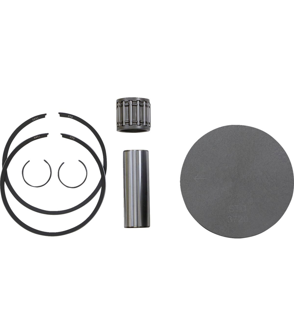 Kit de pistonPiston moulé de haute qualité, fabriqué avec un outillage et un moulage spécifiquesFabriqué d’un alliage hypereutectique pour plus de résistance et une expansion réduiteConstruction spéciale avec deux segments pour une meilleure stabilité et une résistance à l’usure amélioréeJupe complètement traitée MOS2 pour un rodage rapide et une meilleure protection anti-rayuresLe piston anodisé de forme convexe offre une bonne protection contre une chaleur excessiveUtilisation de segments de haute qualité comme par ex. Riken permettant un transfert de chaleur et un étanchéité de qualité optimaleDans une boîte contenant des pistons, segments, entretoise, circlips et roulement haut-moteur