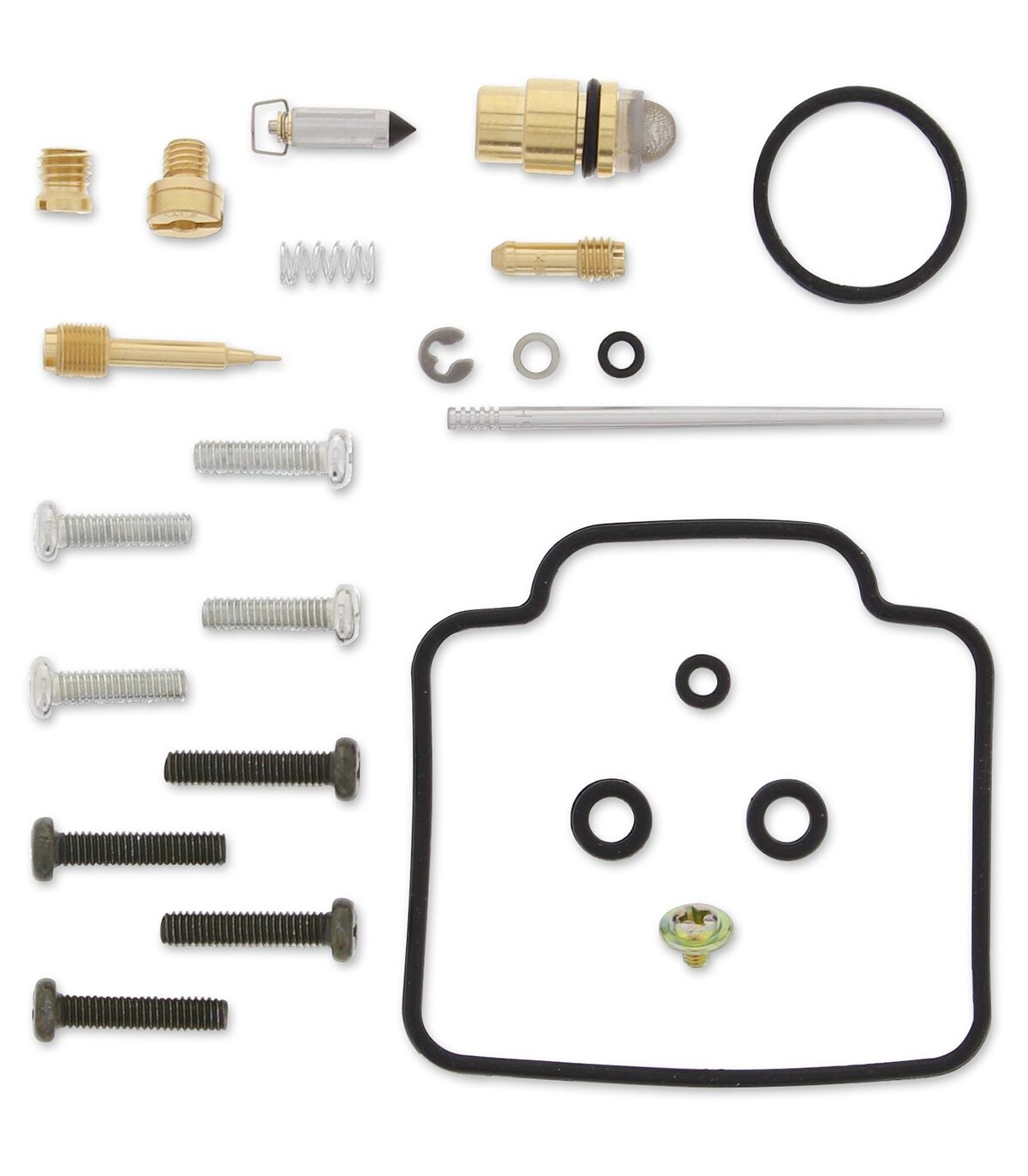 Kit de réparation pour carburateur YamahaLes joints toriques et les joints en caoutchouc sont en caoutchouc nitrile (NBR) ; le NBR affiche une excellente résistance à l’éthanol utilisé dans les carburants actuels.Le kit inclut des joints toriques, des joints, des gicleurs, une aiguille, une vis de richesse, des vis pour cuve de flotteur, un pointeau et un siège de pointeau.Gicleurs de même taille que ceux d’origine inclus