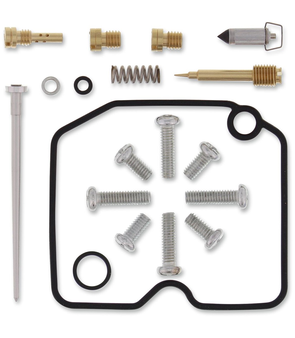 Kit de réparation pour carburateur KawasakiLes joints toriques et les joints en caoutchouc sont en caoutchouc nitrile (NBR) ; le NBR affiche une excellente résistance à l’éthanol utilisé dans les carburants actuels.Le kit inclut des joints toriques, des joints, des gicleurs, une aiguille, une vis de richesse, des vis pour cuve de flotteur, un pointeau et un siège de pointeau.Gicleurs de même taille que ceux d’origine inclus Kit includes components for both carburetors.