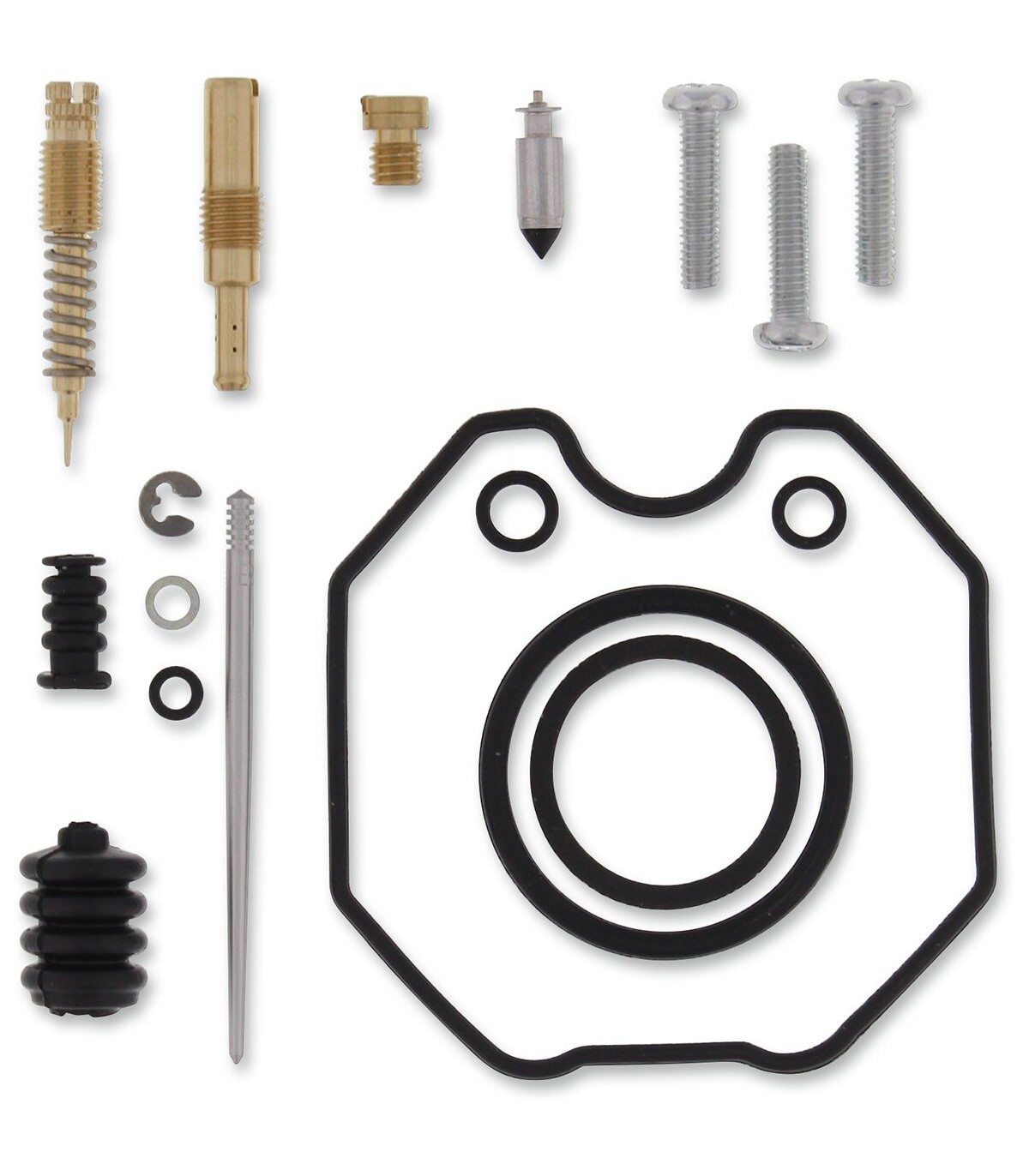 Kit de réparation pour carburateur HondaLes joints toriques et les joints en caoutchouc sont en caoutchouc nitrile (NBR) ; le NBR affiche une excellente résistance à l’éthanol utilisé dans les carburants actuels.Le kit inclut des joints toriques, des joints, des gicleurs, une aiguille, une vis de richesse, des vis pour cuve de flotteur, un pointeau et un siège de pointeau.Gicleurs de même taille que ceux d’origine inclus