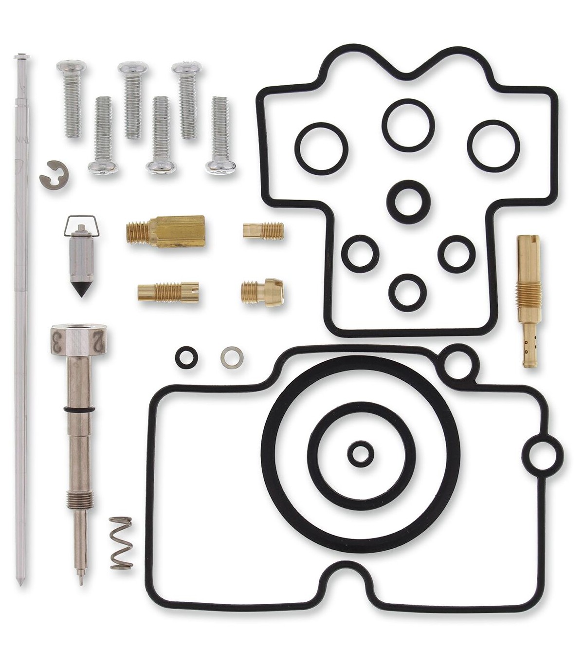 Kit de réparation pour carburateur HondaLes joints toriques et les joints en caoutchouc sont en caoutchouc nitrile (NBR) ; le NBR affiche une excellente résistance à l’éthanol utilisé dans les carburants actuels.Le kit inclut des joints toriques, des joints, des gicleurs, une aiguille, une vis de richesse, des vis pour cuve de flotteur, un pointeau et un siège de pointeau.Gicleurs de même taille que ceux d’origine inclus