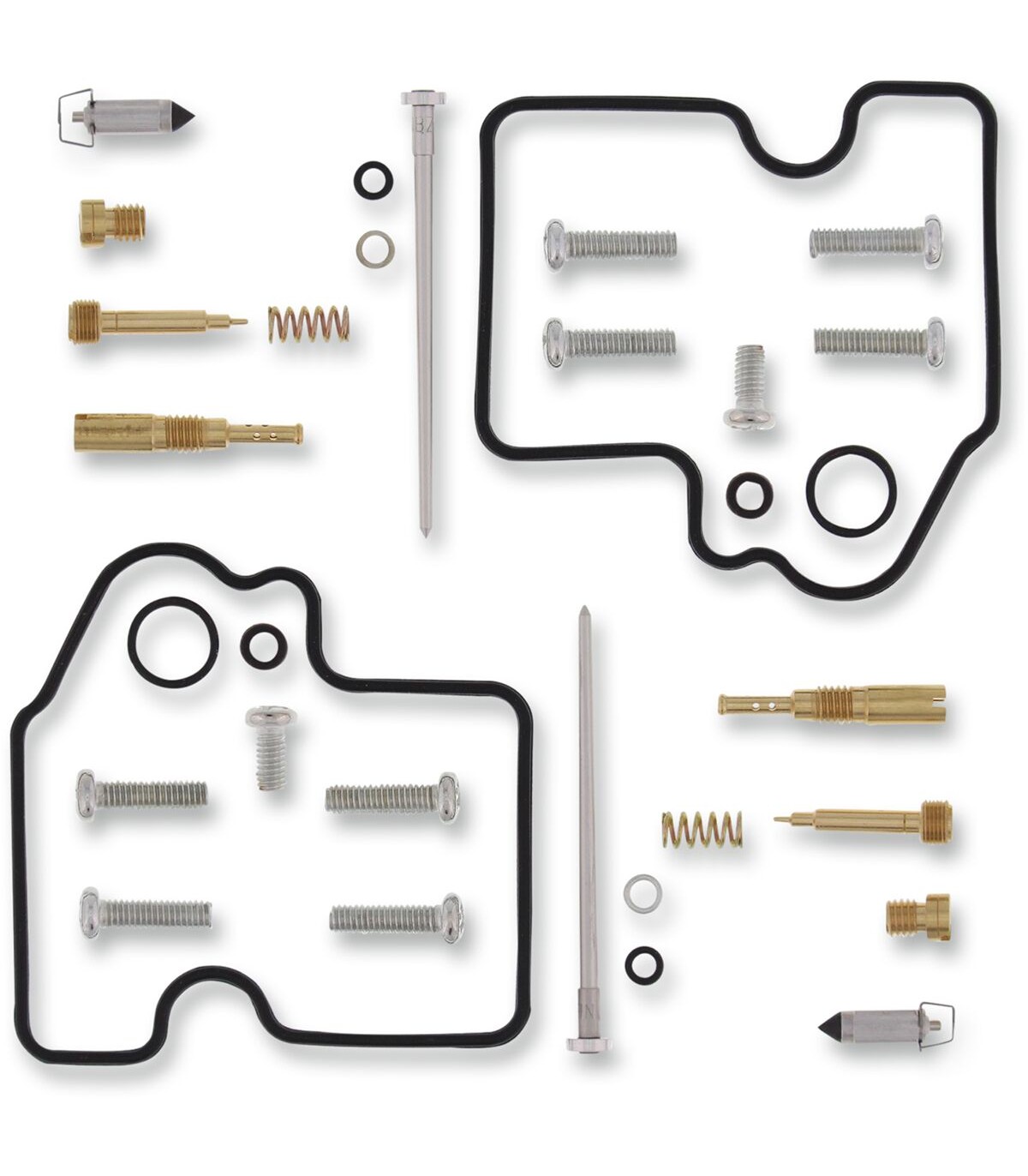 Kit de réparation pour carburateur KawasakiLes joints toriques et les joints en caoutchouc sont en caoutchouc nitrile (NBR) ; le NBR affiche une excellente résistance à l’éthanol utilisé dans les carburants actuels.Le kit inclut des joints toriques, des joints, des gicleurs, une aiguille, une vis de richesse, des vis pour cuve de flotteur, un pointeau et un siège de pointeau.Gicleurs de même taille que ceux d’origine inclus Contient le nombre de pièces pour deux carburateurs.