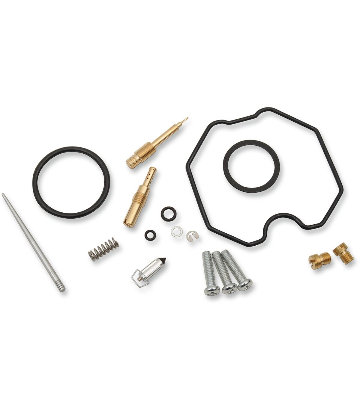 Kit de réparation pour carburateur HondaLes joints toriques et les joints en caoutchouc sont en caoutchouc nitrile (NBR) ; le NBR affiche une excellente résistance à l’éthanol utilisé dans les carburants actuels.Le kit inclut des joints toriques, des joints, des gicleurs, une aiguille, une vis de richesse, des vis pour cuve de flotteur, un pointeau et un siège de pointeau.Gicleurs de même taille que ceux d’origine inclus