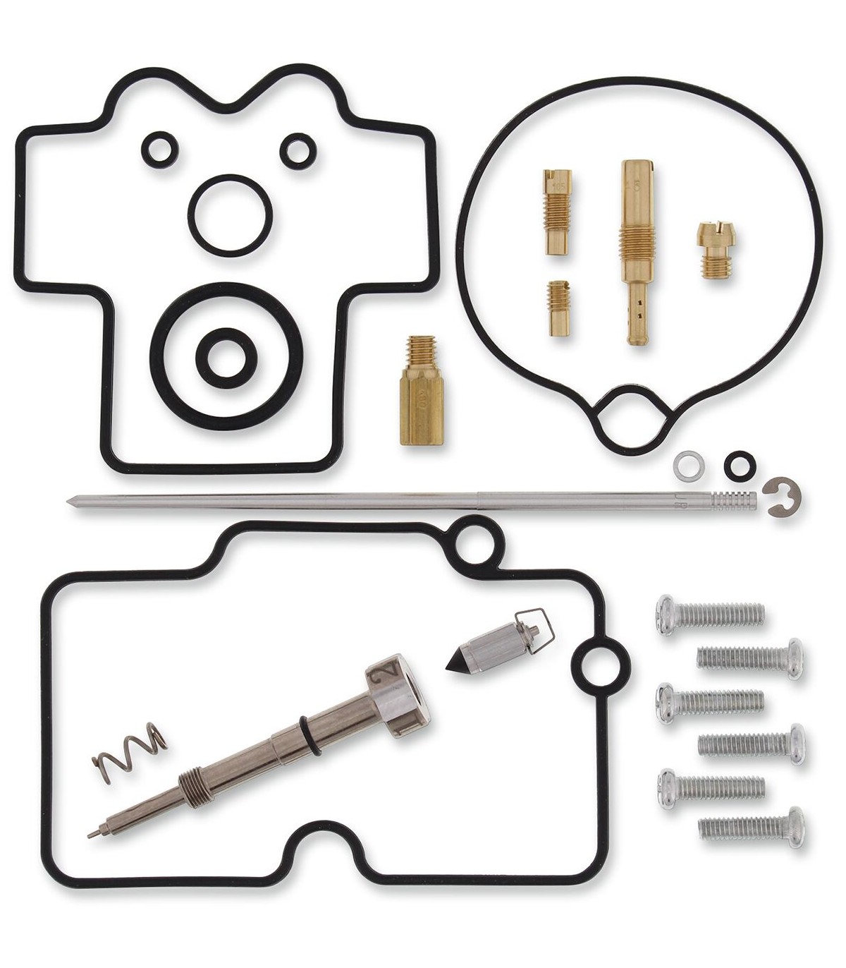 Kit de réparation pour carburateur YamahaLes joints toriques et les joints en caoutchouc sont en caoutchouc nitrile (NBR) ; le NBR affiche une excellente résistance à l’éthanol utilisé dans les carburants actuels.Le kit inclut des joints toriques, des joints, des gicleurs, une aiguille, une vis de richesse, des vis pour cuve de flotteur, un pointeau et un siège de pointeau.Gicleurs de même taille que ceux d’origine inclus