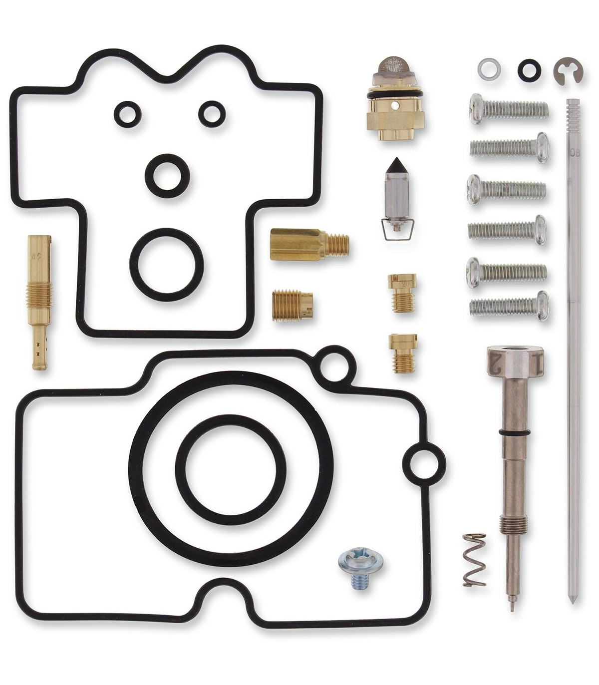 Kit de réparation pour carburateur YamahaLes joints toriques et les joints en caoutchouc sont en caoutchouc nitrile (NBR) ; le NBR affiche une excellente résistance à l’éthanol utilisé dans les carburants actuels.Le kit inclut des joints toriques, des joints, des gicleurs, une aiguille, une vis de richesse, des vis pour cuve de flotteur, un pointeau et un siège de pointeau.Gicleurs de même taille que ceux d’origine inclus