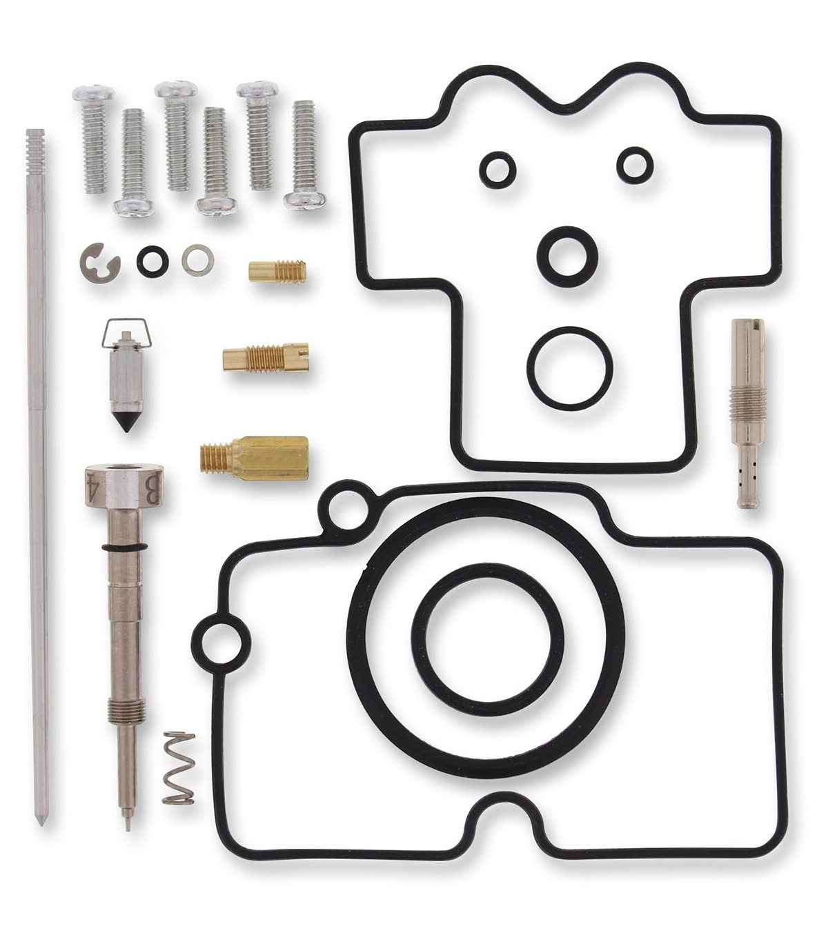 Kit de réparation pour carburateur KawasakiLes joints toriques et les joints en caoutchouc sont en caoutchouc nitrile (NBR) ; le NBR affiche une excellente résistance à l’éthanol utilisé dans les carburants actuels.Le kit inclut des joints toriques, des joints, des gicleurs, une aiguille, une vis de richesse, des vis pour cuve de flotteur, un pointeau et un siège de pointeau.Gicleurs de même taille que ceux d’origine inclus