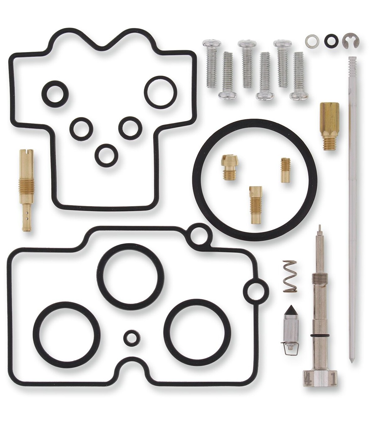Kit de réparation pour carburateur HondaLes joints toriques et les joints en caoutchouc sont en caoutchouc nitrile (NBR) ; le NBR affiche une excellente résistance à l’éthanol utilisé dans les carburants actuels.Le kit inclut des joints toriques, des joints, des gicleurs, une aiguille, une vis de richesse, des vis pour cuve de flotteur, un pointeau et un siège de pointeau.Gicleurs de même taille que ceux d’origine inclus