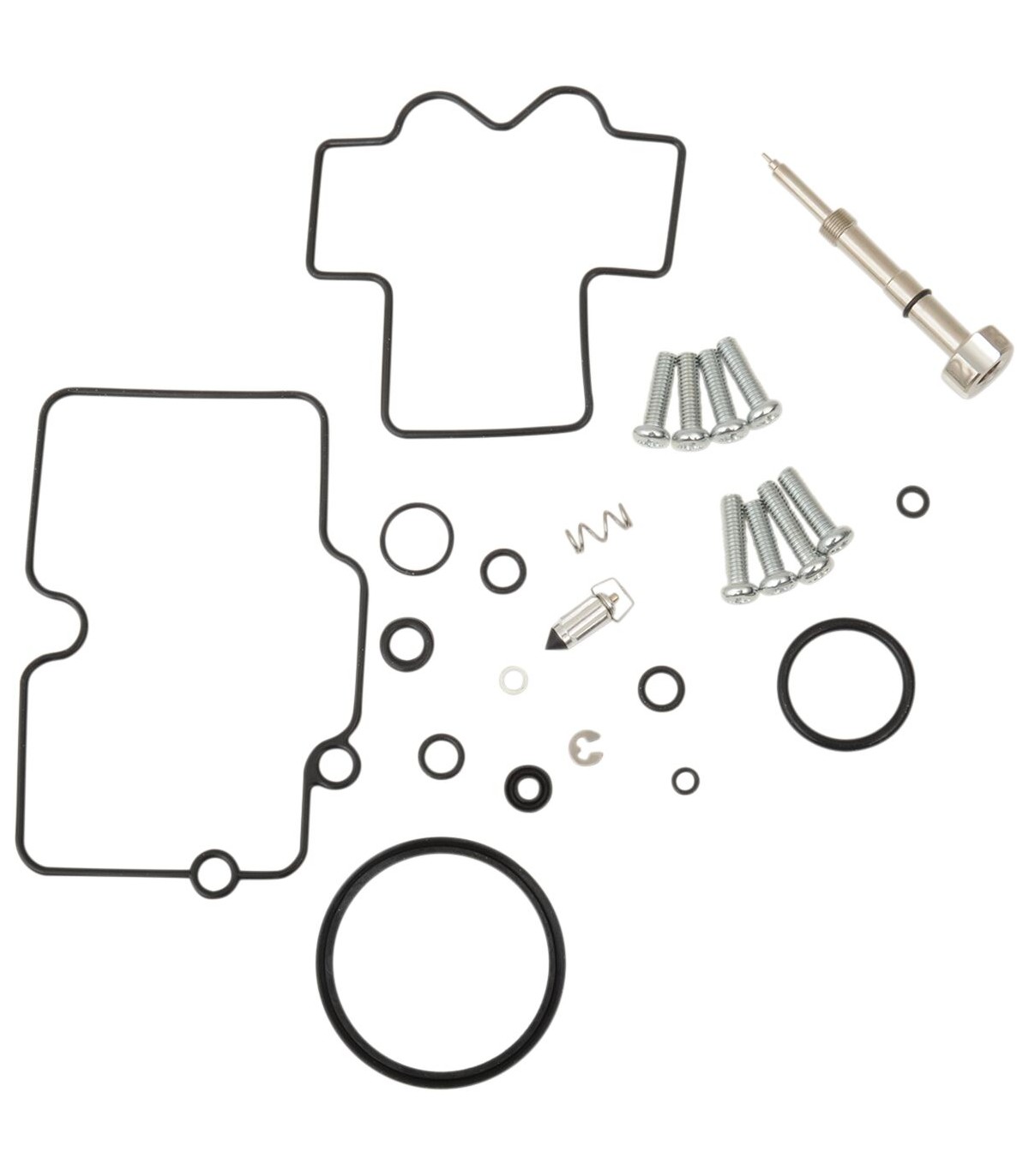 Kit de réparation pour carburateur KTMLes joints toriques et les joints en caoutchouc sont en caoutchouc nitrile (NBR) ; le NBR affiche une excellente résistance à l’éthanol utilisé dans les carburants actuels.Le kit inclut des joints toriques, des joints, des gicleurs, une aiguille, une vis de richesse, des vis pour cuve de flotteur, un pointeau et un siège de pointeau.Gicleurs de même taille que ceux d’origine inclus