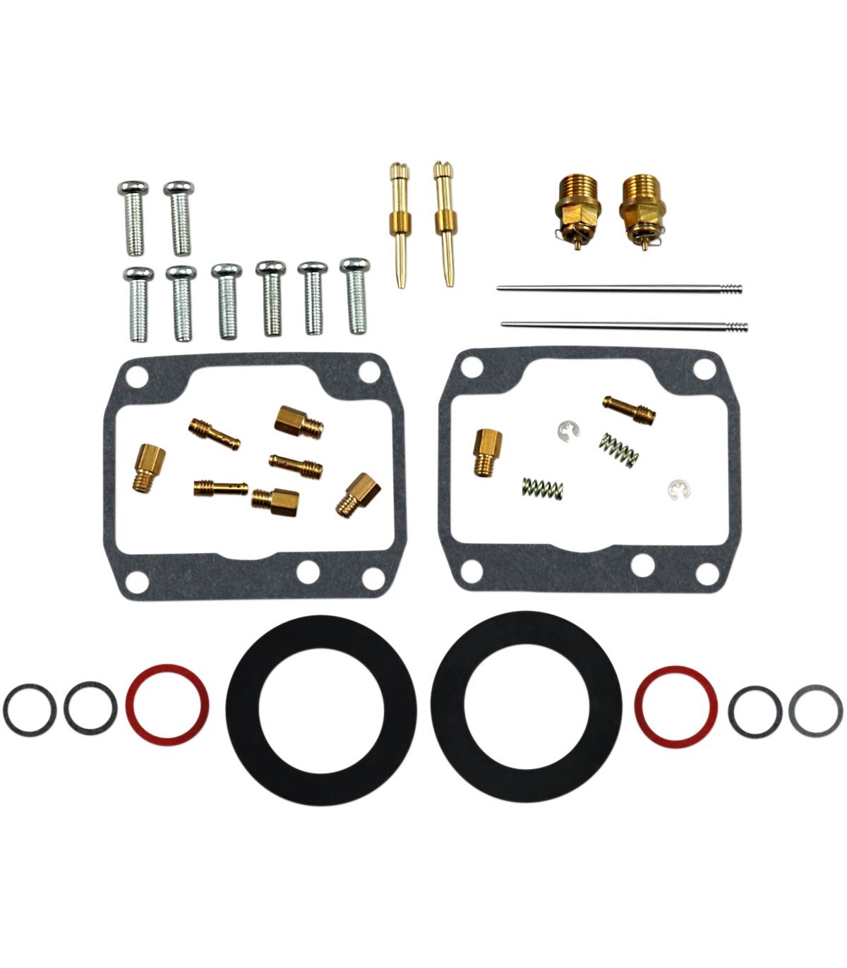 Carburetor Repair Kit - Ski-DooNBR rubber material is used on all O-rings and rubber gaskets; NBR has excellent resistance to the ethanol used in today's fuelsKit includes all necessary O-rings, gaskets, jets, needle, mixture screw, float bowl screws, float valve needle and seatApplications that use paper float bowl gaskets are upgraded to High Performance Interference Gasket materialOEM jet sizes and slide needles are included in the kit