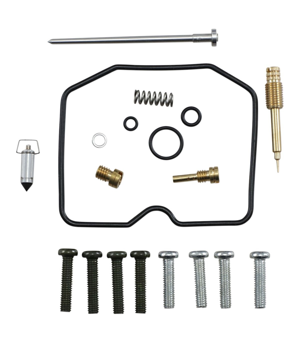 Kit de réparation pour carburateur KawasakiLes joints toriques et les joints en caoutchouc sont en caoutchouc nitrile (NBR) ; le NBR affiche une excellente résistance à l’éthanol utilisé dans les carburants actuels.Le kit inclut des joints toriques, des joints, des gicleurs, une aiguille, une vis de richesse, des vis pour cuve de flotteur, un pointeau et un siège de pointeau.Gicleurs de même taille que ceux d’origine inclus