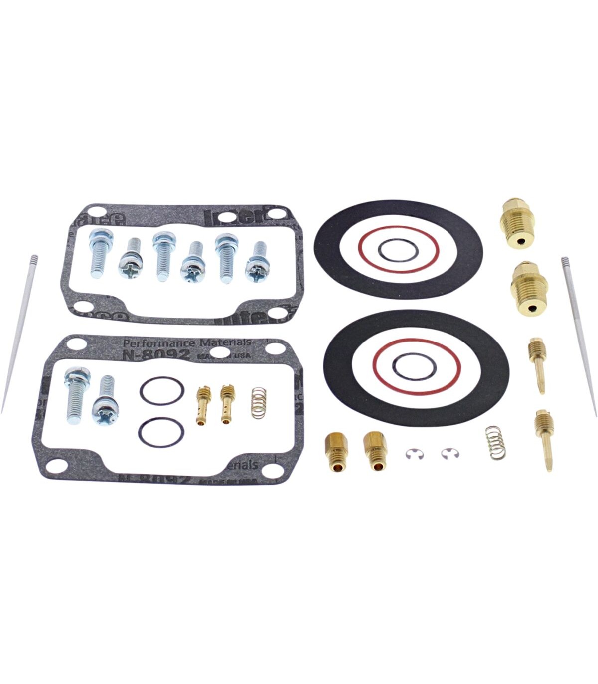 Carburetor Repair Kit - Ski-DooNBR rubber material is used on all O-rings and rubber gaskets; NBR has excellent resistance to the ethanol used in today's fuelsKit includes all necessary O-rings, gaskets, jets, needle, mixture screw, float bowl screws, float valve needle and seatApplications that use paper float bowl gaskets are upgraded to High Performance Interference Gasket materialOEM jet sizes and slide needles are included in the kit