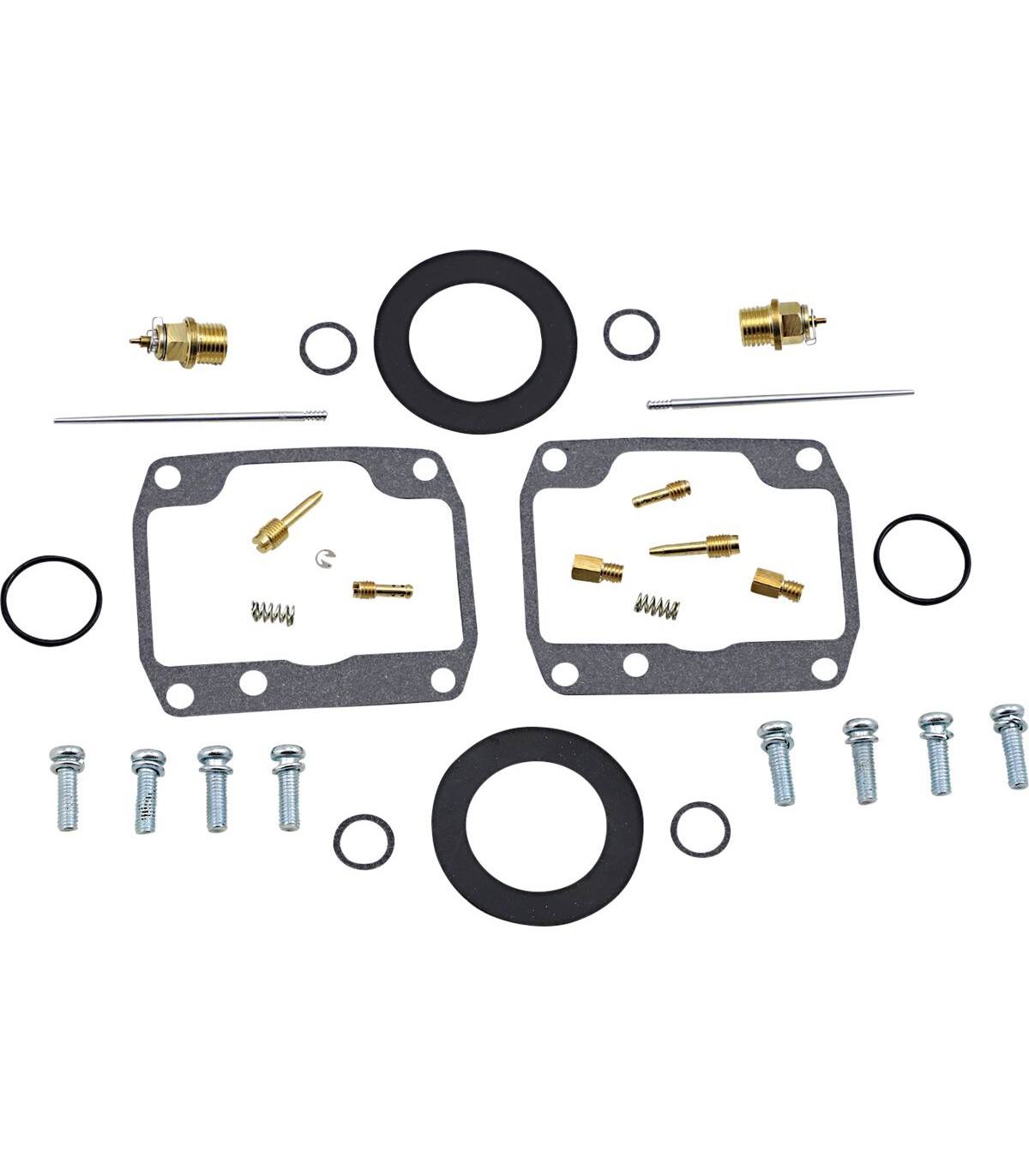 Kit de réparation pour carburateurLe kit comprend l’ensemble des joints toriques, joints, gicleurs, aiguille, vis de richesse, vis pour cuve du flotteur, pointeau et siège de pointeau (l’aiguille et les autres gicleurs ne sont pas compris dans le kit)Les joints toriques et les joints en caoutchouc sont en caoutchouc nitrile (NBR) ; le NBR affiche une excellente résistance à l’éthanol utilisé dans les carburants d’aujourd’huiLes applications avec une cuve de carburateur en papier ont été améliorées avec un matériau de joint Interface haute performanceLes gicleurs de taille OEM et les boisseaux sont inclus dans le kit