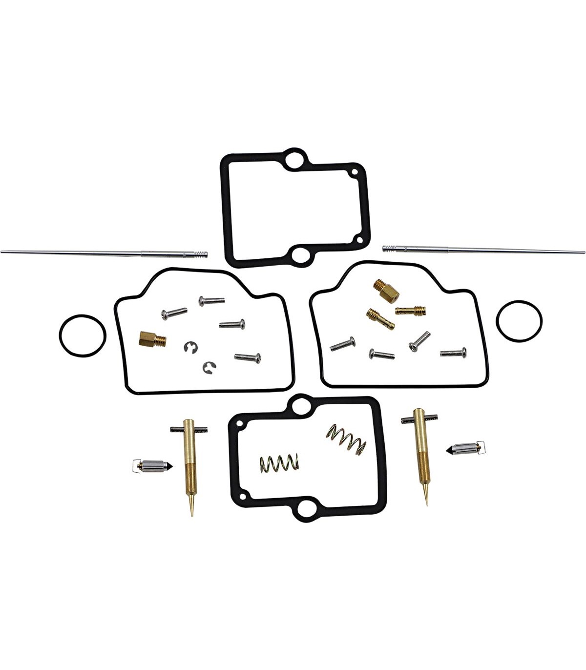 Kit de réparation pour carburateurLe kit comprend l’ensemble des joints toriques, joints, gicleurs, aiguille, vis de richesse, vis pour cuve du flotteur, pointeau et siège de pointeau (l’aiguille et les autres gicleurs ne sont pas compris dans le kit)Les joints toriques et les joints en caoutchouc sont en caoutchouc nitrile (NBR) ; le NBR affiche une excellente résistance à l’éthanol utilisé dans les carburants d’aujourd’huiLes applications avec une cuve de carburateur en papier ont été améliorées avec un matériau de joint Interface haute performanceLes gicleurs de taille OEM et les boisseaux sont inclus dans le kit