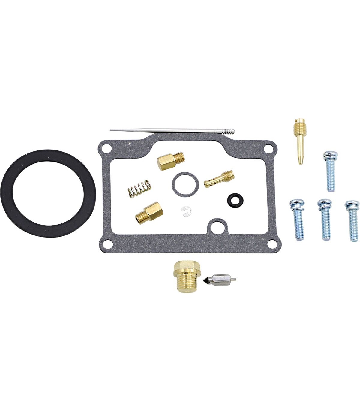 Kit de réparation pour carburateurLe kit comprend l’ensemble des joints toriques, joints, gicleurs, aiguille, vis de richesse, vis pour cuve du flotteur, pointeau et siège de pointeau (l’aiguille et les autres gicleurs ne sont pas compris dans le kit)Les joints toriques et les joints en caoutchouc sont en caoutchouc nitrile (NBR) ; le NBR affiche une excellente résistance à l’éthanol utilisé dans les carburants d’aujourd’huiLes applications avec une cuve de carburateur en papier ont été améliorées avec un matériau de joint Interface haute performanceLes gicleurs de taille OEM et les boisseaux sont inclus dans le kit