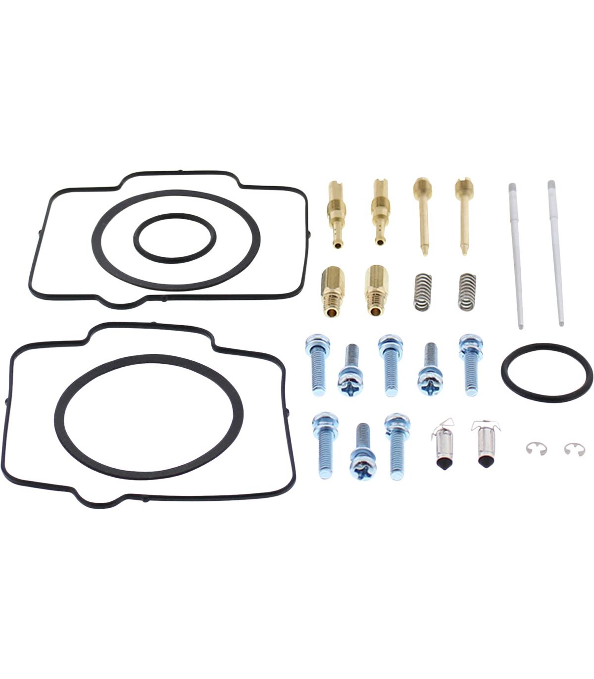Kit de réparation pour carburateurLe kit comprend l’ensemble des joints toriques, joints, gicleurs, aiguille, vis de richesse, vis pour cuve du flotteur, pointeau et siège de pointeau (l’aiguille et les autres gicleurs ne sont pas compris dans le kit)Les joints toriques et les joints en caoutchouc sont en caoutchouc nitrile (NBR) ; le NBR affiche une excellente résistance à l’éthanol utilisé dans les carburants d’aujourd’huiLes applications avec une cuve de carburateur en papier ont été améliorées avec un matériau de joint Interface haute performanceLes gicleurs de taille OEM et les boisseaux sont inclus dans le kit