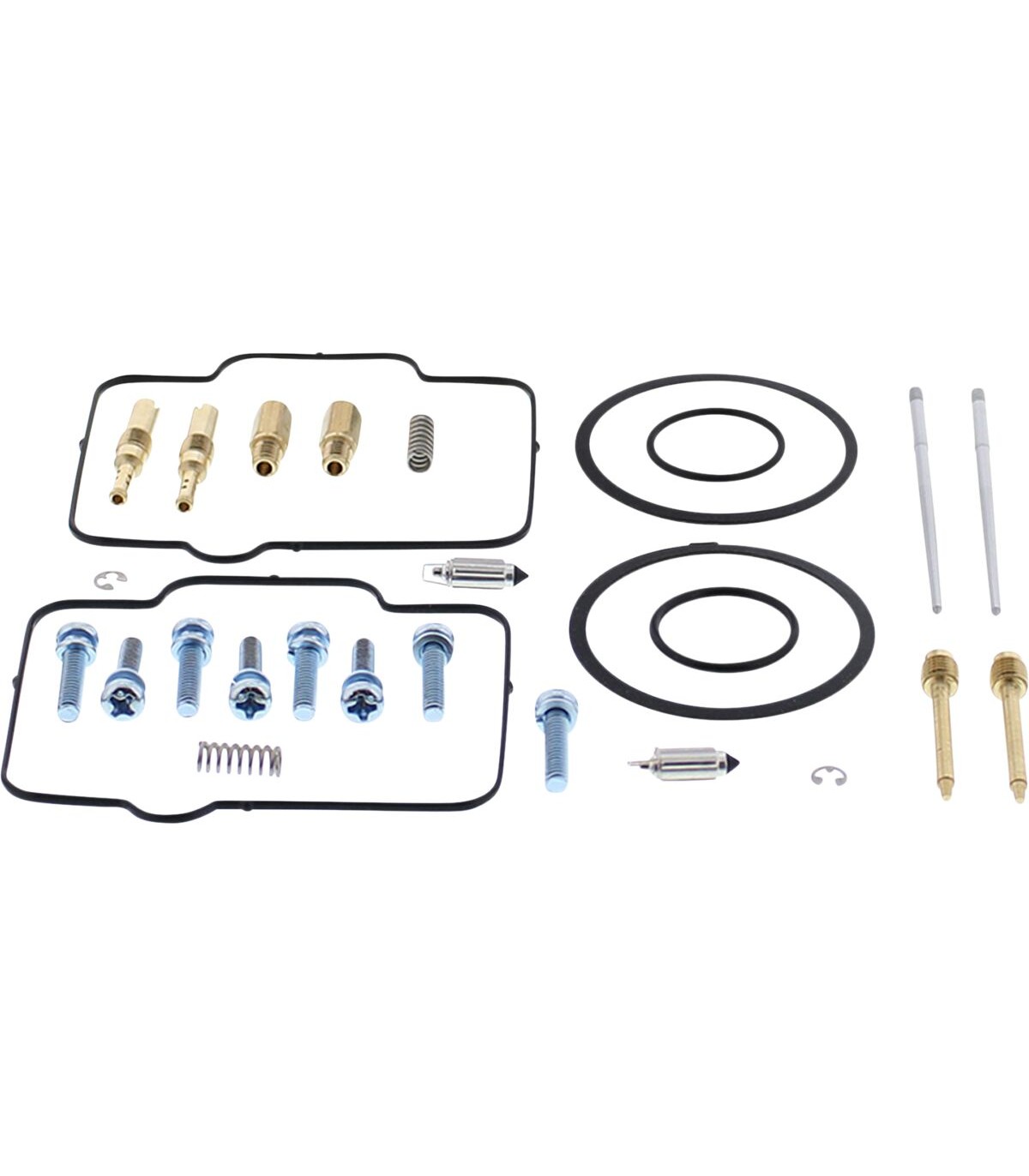 Kit de réparation pour carburateurLe kit comprend l’ensemble des joints toriques, joints, gicleurs, aiguille, vis de richesse, vis pour cuve du flotteur, pointeau et siège de pointeau (l’aiguille et les autres gicleurs ne sont pas compris dans le kit)Les joints toriques et les joints en caoutchouc sont en caoutchouc nitrile (NBR) ; le NBR affiche une excellente résistance à l’éthanol utilisé dans les carburants d’aujourd’huiLes applications avec une cuve de carburateur en papier ont été améliorées avec un matériau de joint Interface haute performanceLes gicleurs de taille OEM et les boisseaux sont inclus dans le kit